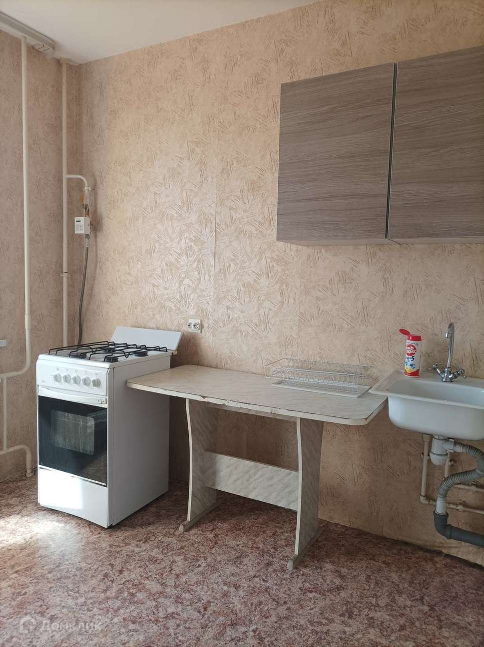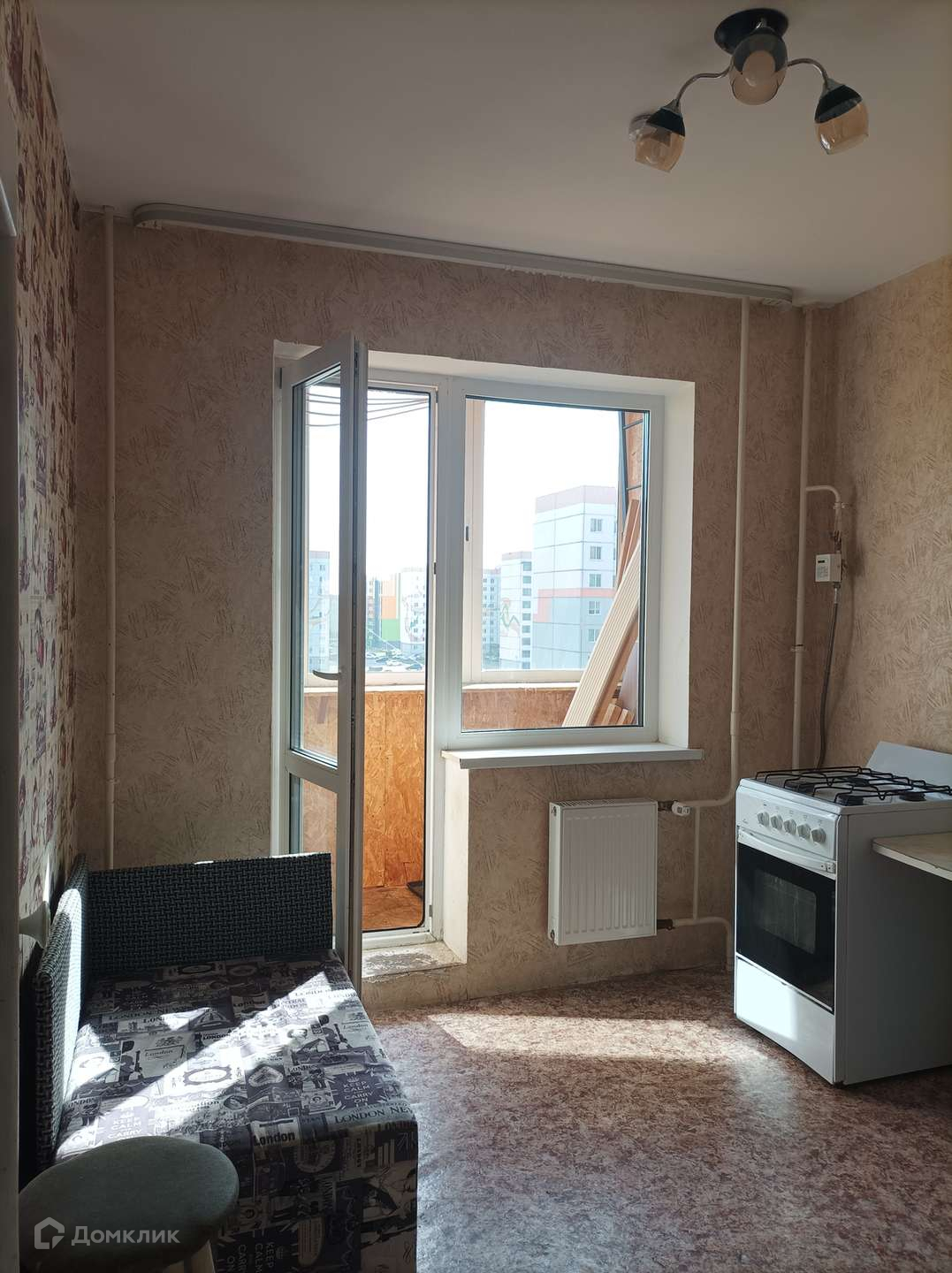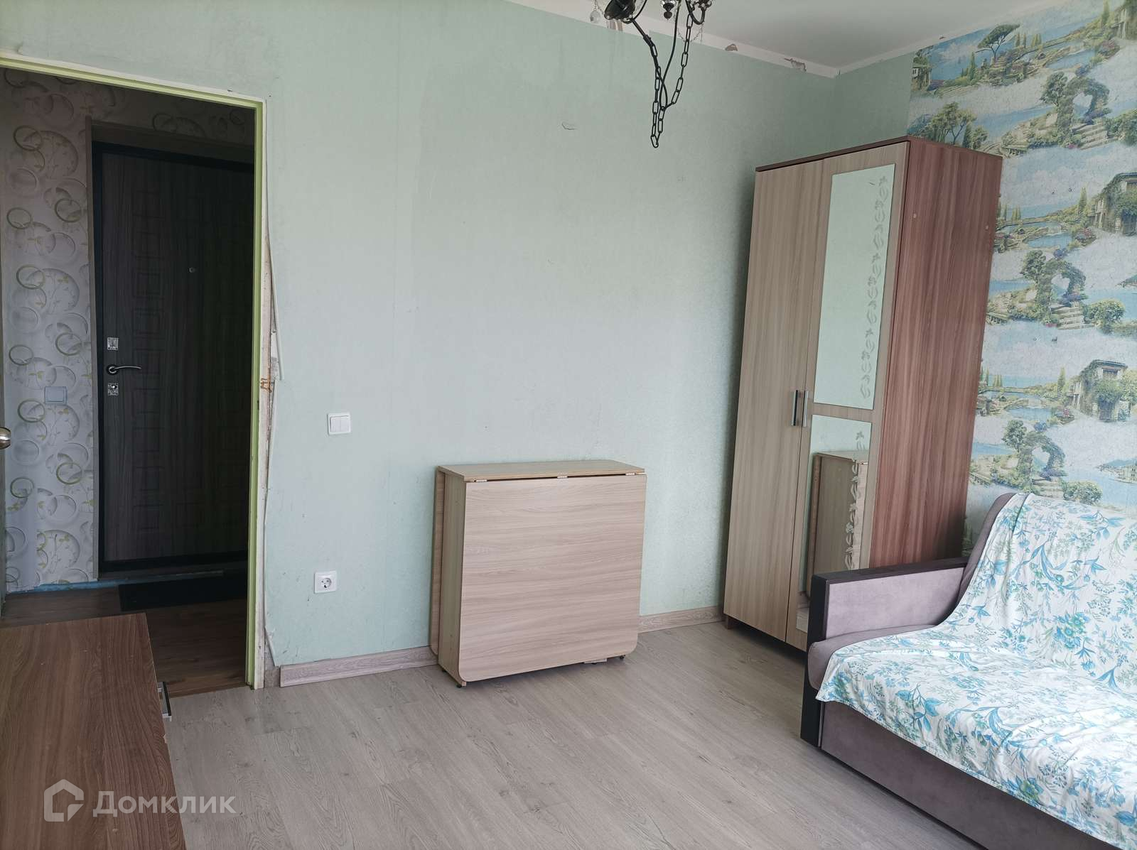 B квартире остаётся кухонная мебель; диван и корпусная мебель в комнате.