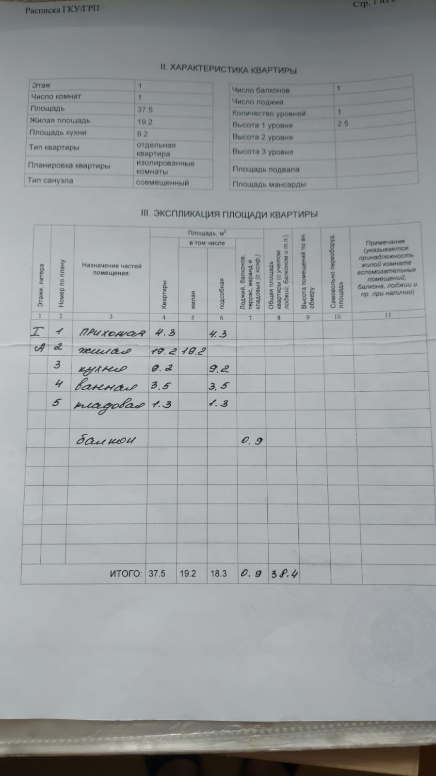Общая площадь 37.5 м2