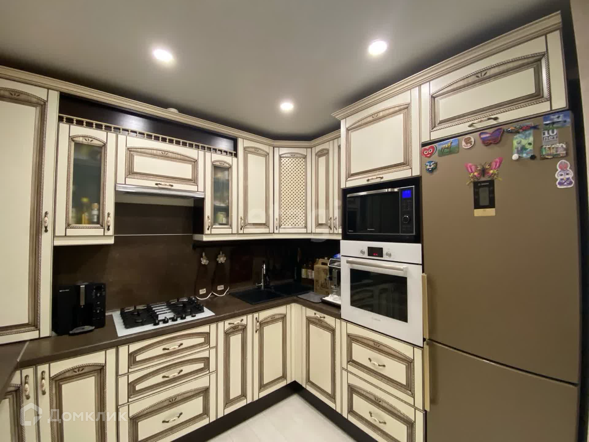 На 6,1 м2 удачно разместили кухонный гарнитур с большой рабочей поверхностью, вместительной системой хранения, встроенной посудомоечной машинкой, духовым шкафом, газовой плитой и вытяжкой. Установлены хорошие фильтры питьевой воды.
