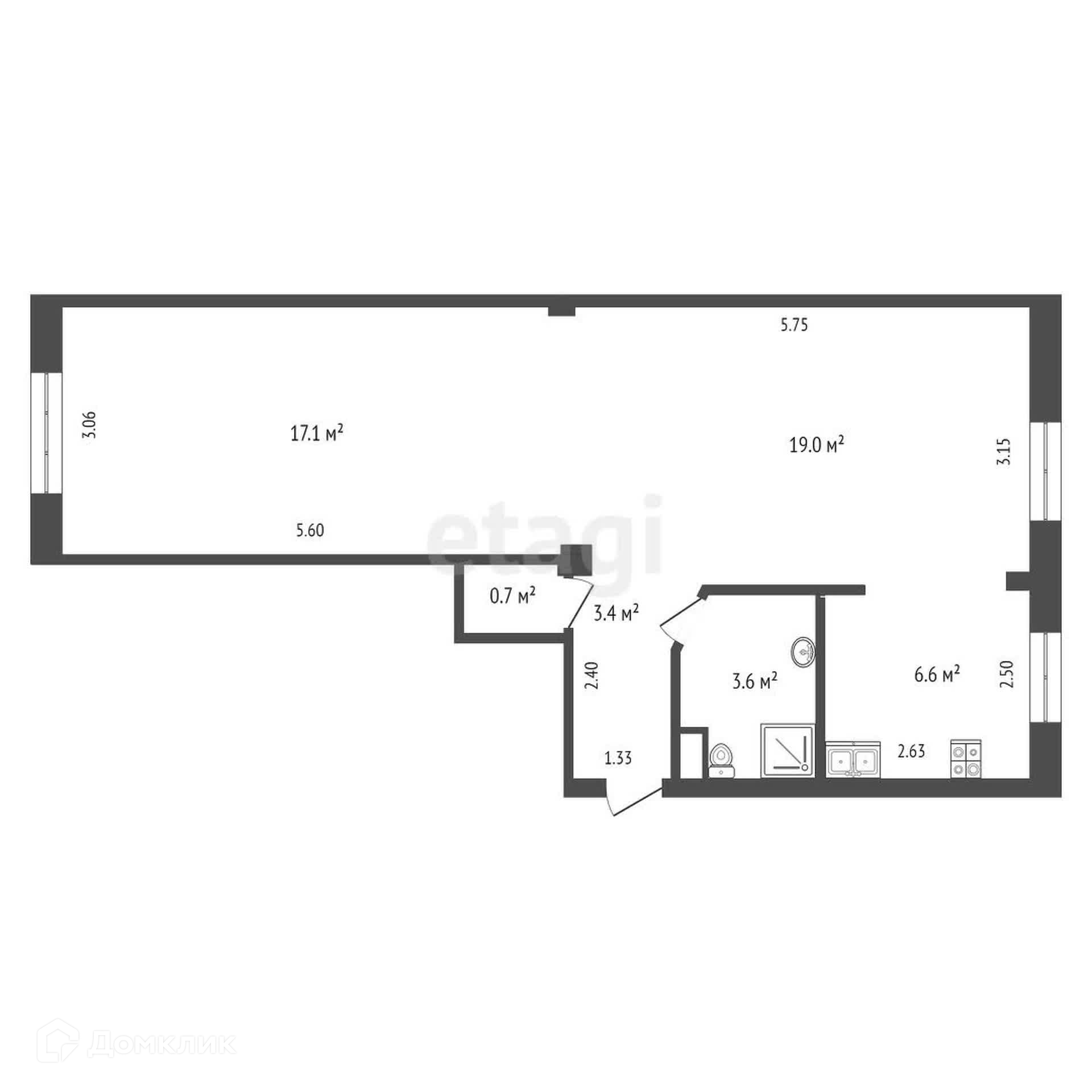 Общая площадь 50.1 м2