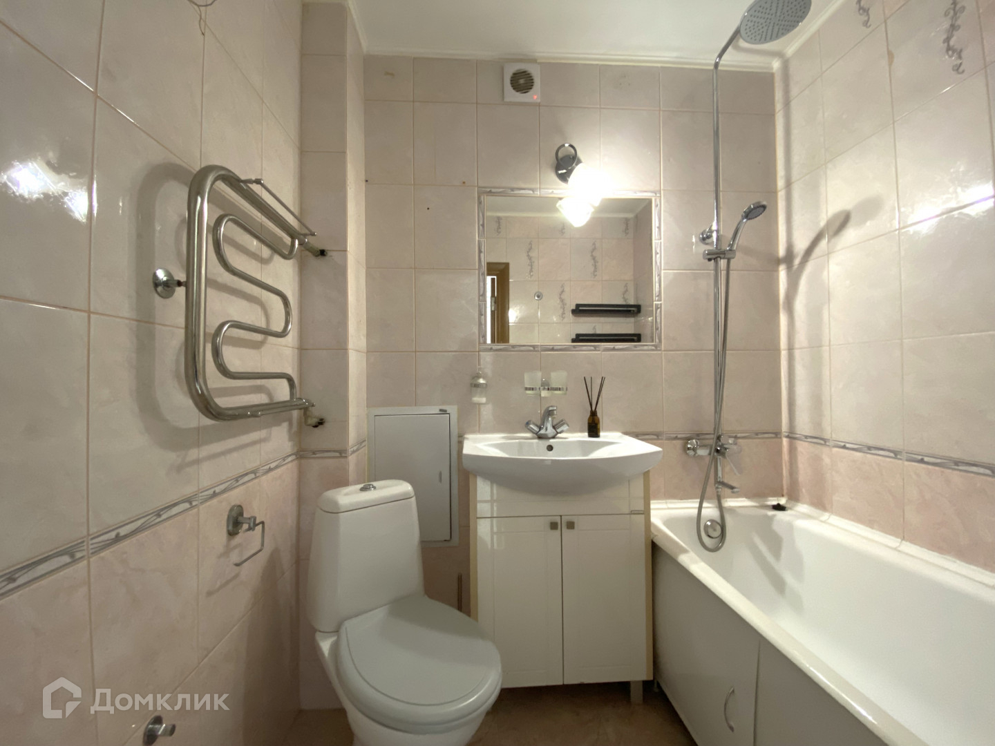 Су совмещен, кафельная плитка, душ с тремя режимами.