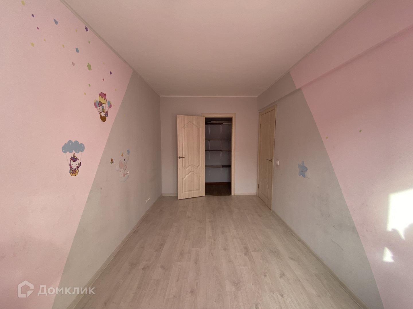 В спальне вместительная гардеробная с местами для хранения.
