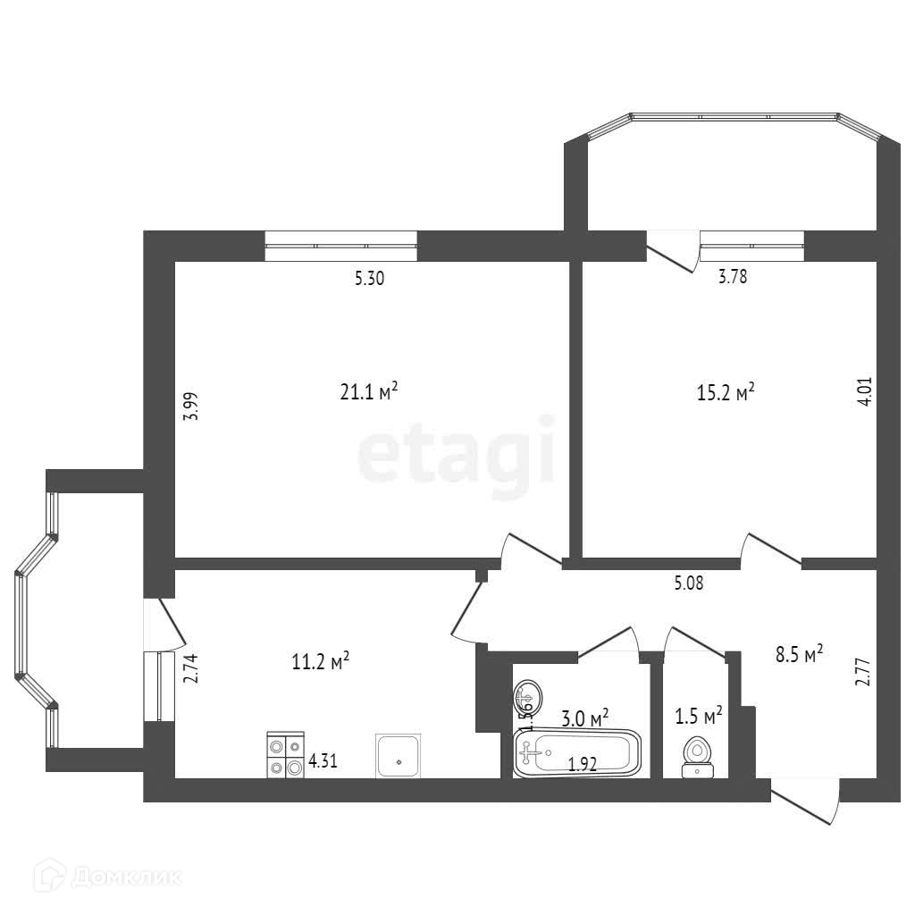 Общая площадь 60.5 м2