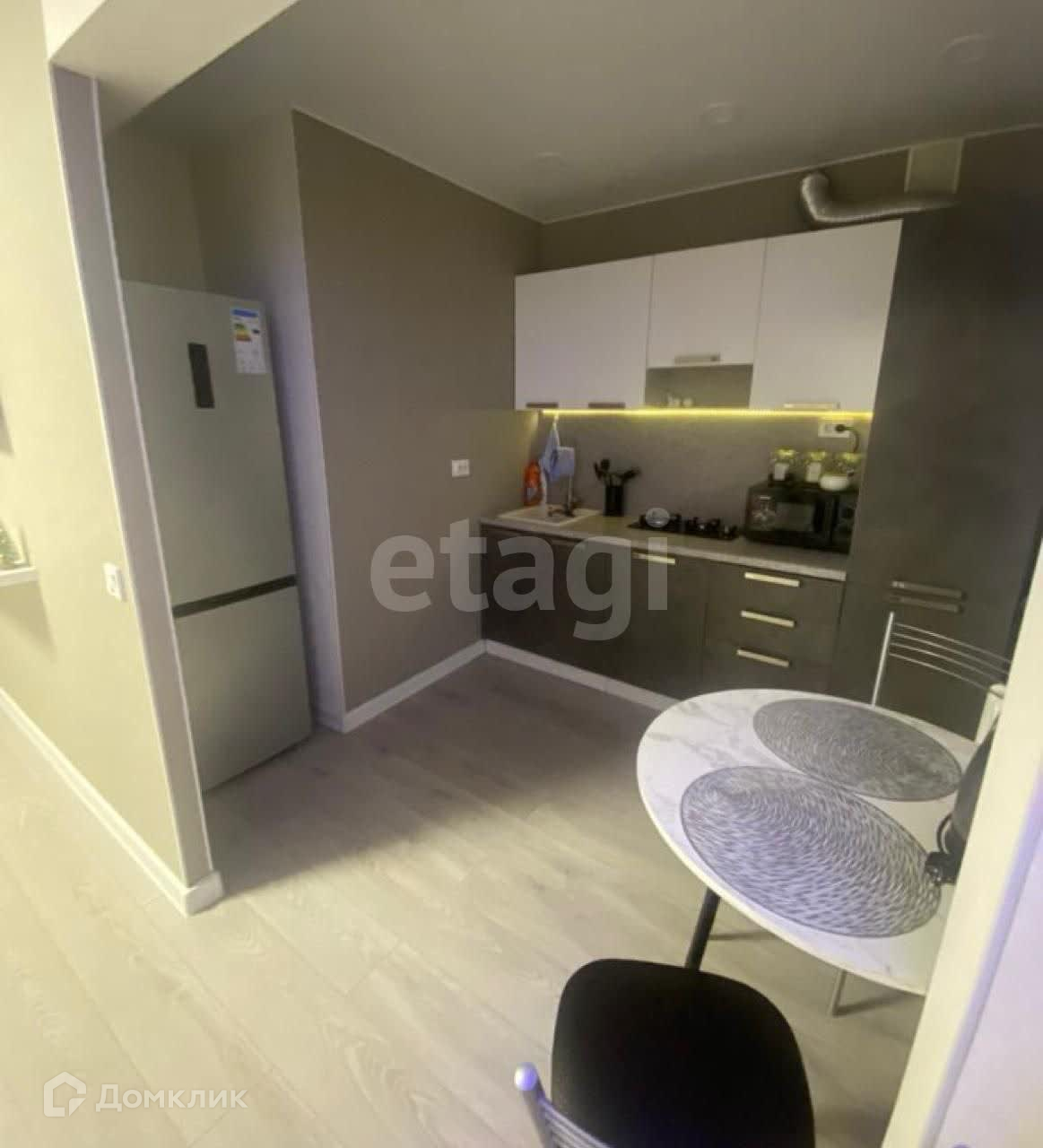 Кухонная зона совмещена с комнатой. Это идеальное решение для тех, кто ценит функциональность и современный дизайн. Благодаря грамотному зонированию пространства, вы получите не только уютную зону для готовки, но и полноценное место для отдыха и приема гостей.