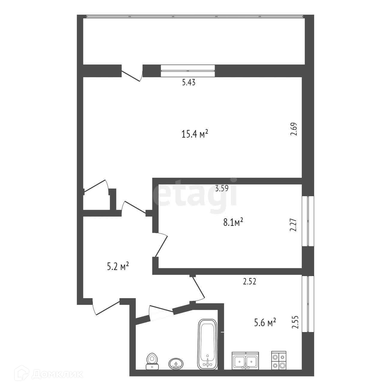 Балкон, лоджия 1 балкон