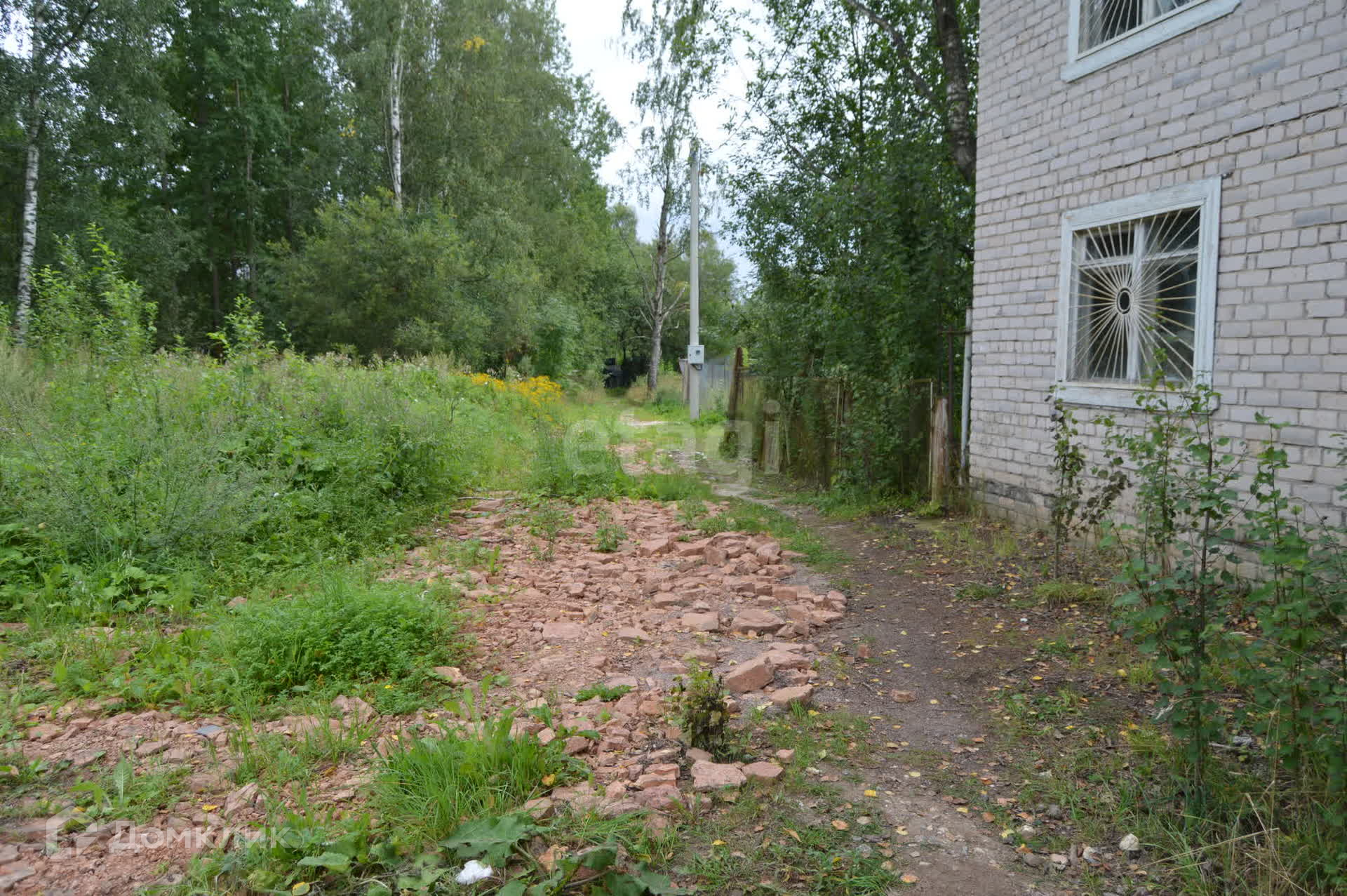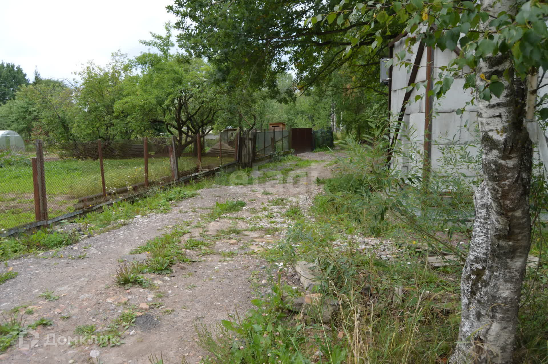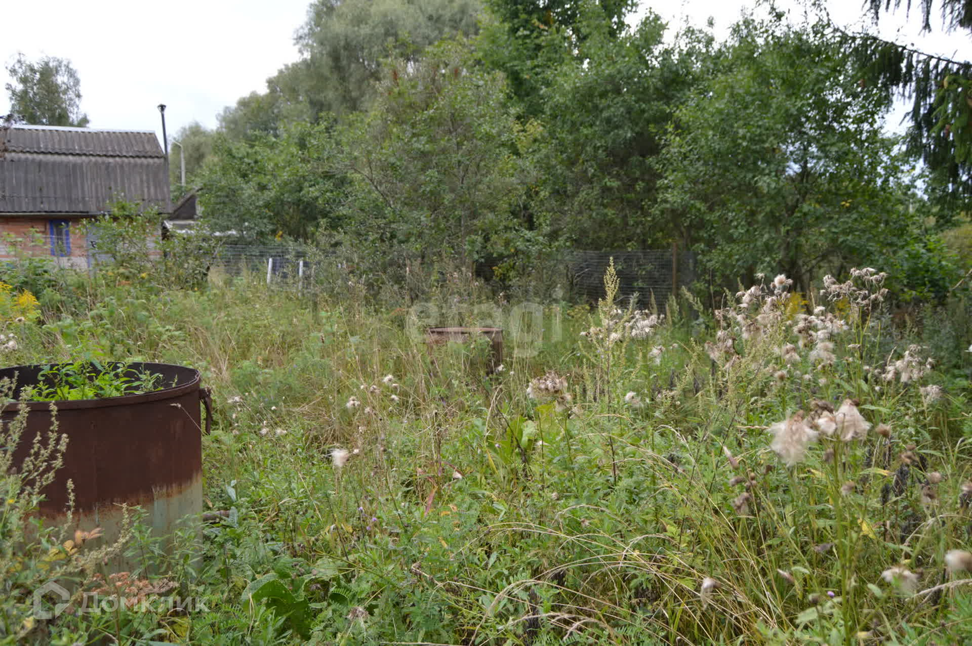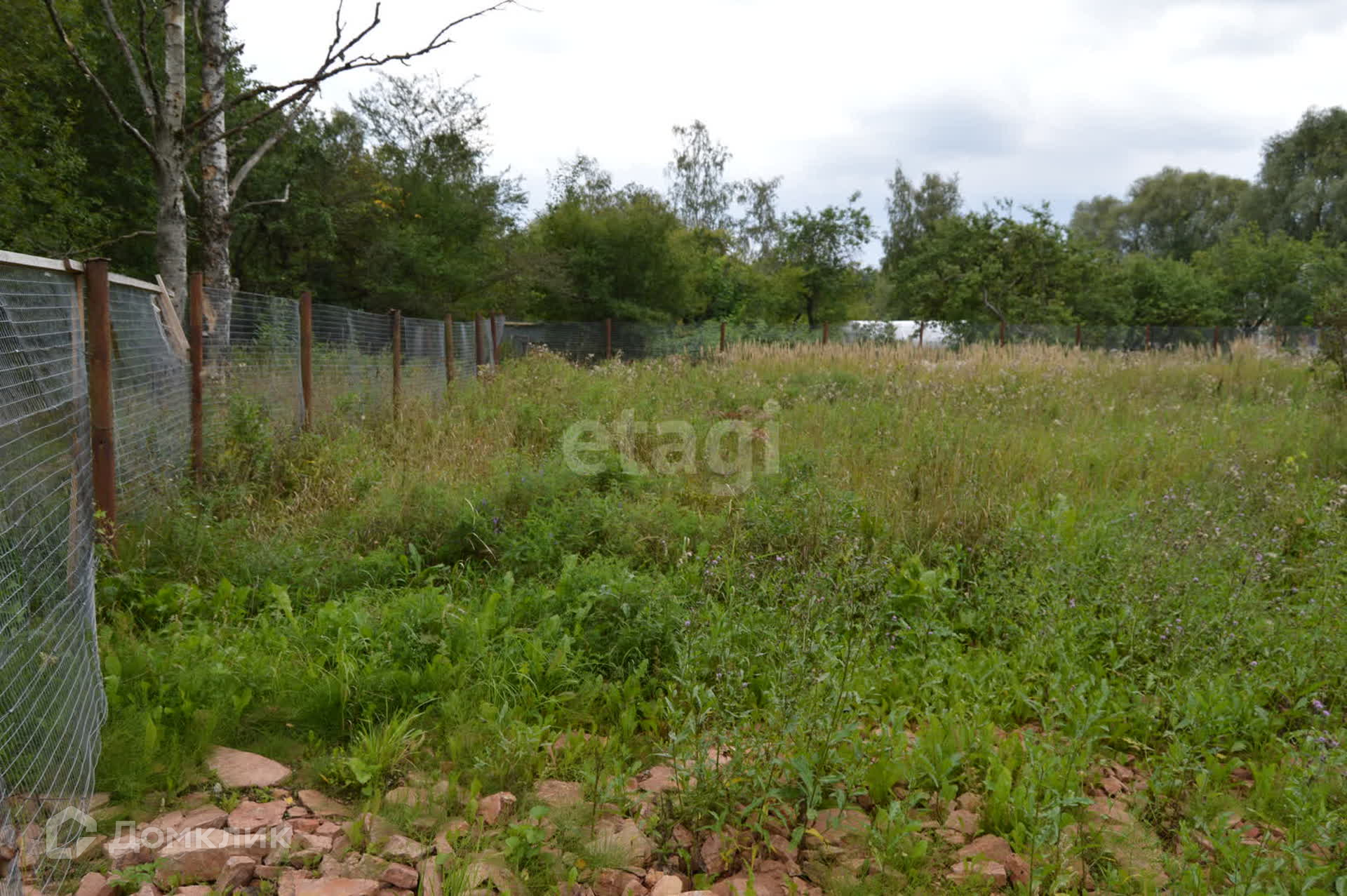 Огражден сеткой рабицей с трех сторон, имеются насаждения деревьев.