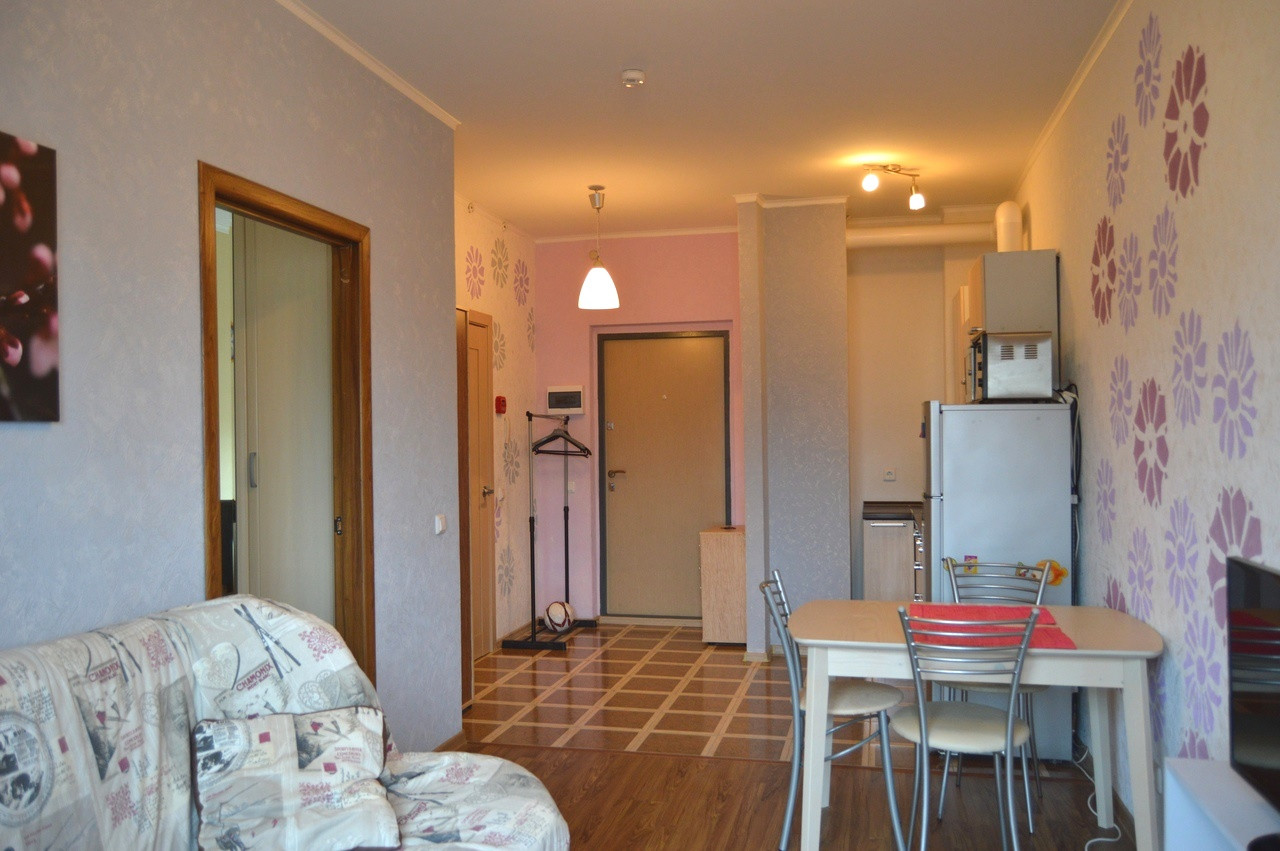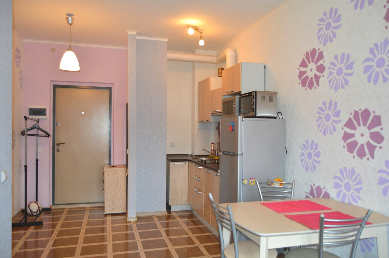 1 комн. квартира, ул. Большая Санкт-Петербургская д.124а (Северный микрорайон, ЖК «Тринити»), 7/16 монол., 40 кв.м. общий метраж, из них: 20 кв.м. кухня-столовая и 10 кв.м. спальня, лоджия застеклена.