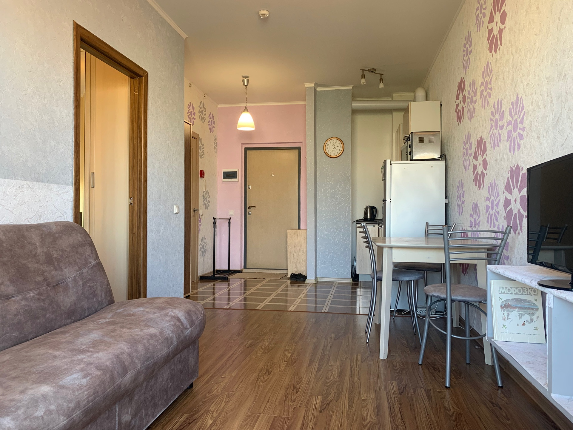 Есть вся необходимая мебель и техника: встроенная кухня, диван, телевизор, холодильник, стиральная машина-автомат, микроволновая печь, шкаф, комод, двуспальная кровать, посуда, Wi-fi, кабельное телевидение и т.д.