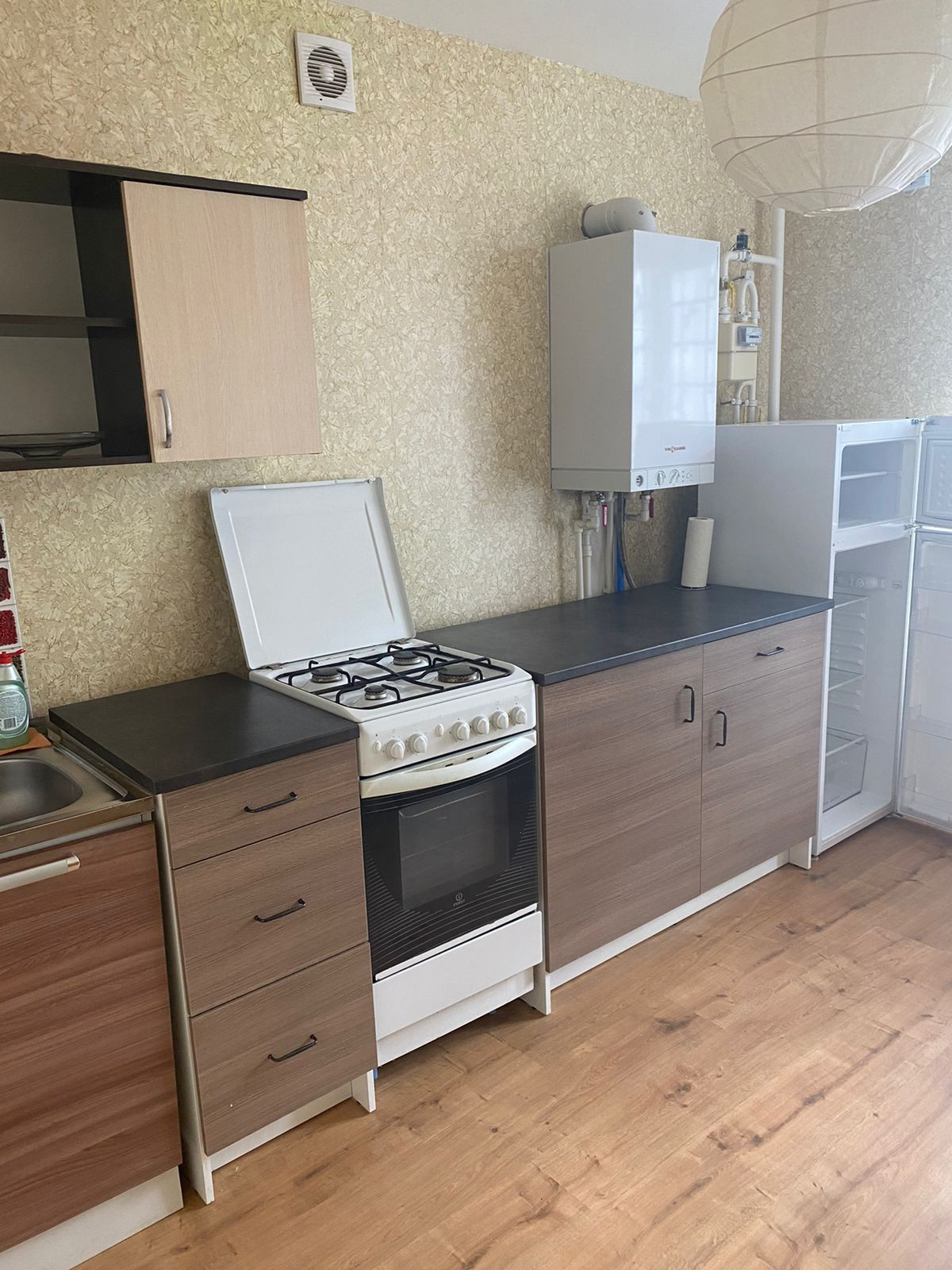 ул. Озёрная, д. 14: 1 к.кв., 35/16/8 м., 3/7 кирп., стеклопакеты, косметический ремонт, балкон застеклён, автономное отопление, вся необх. мебель (диван, шкаф, две тумбы, стол, кухонный гарнитур), холодильник, стиральная машина, 16500 руб. + счетчики
