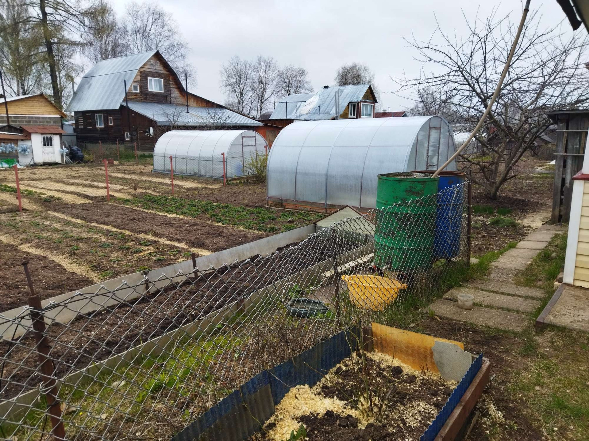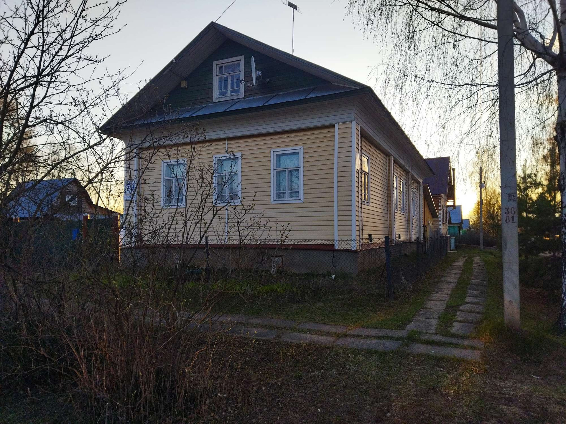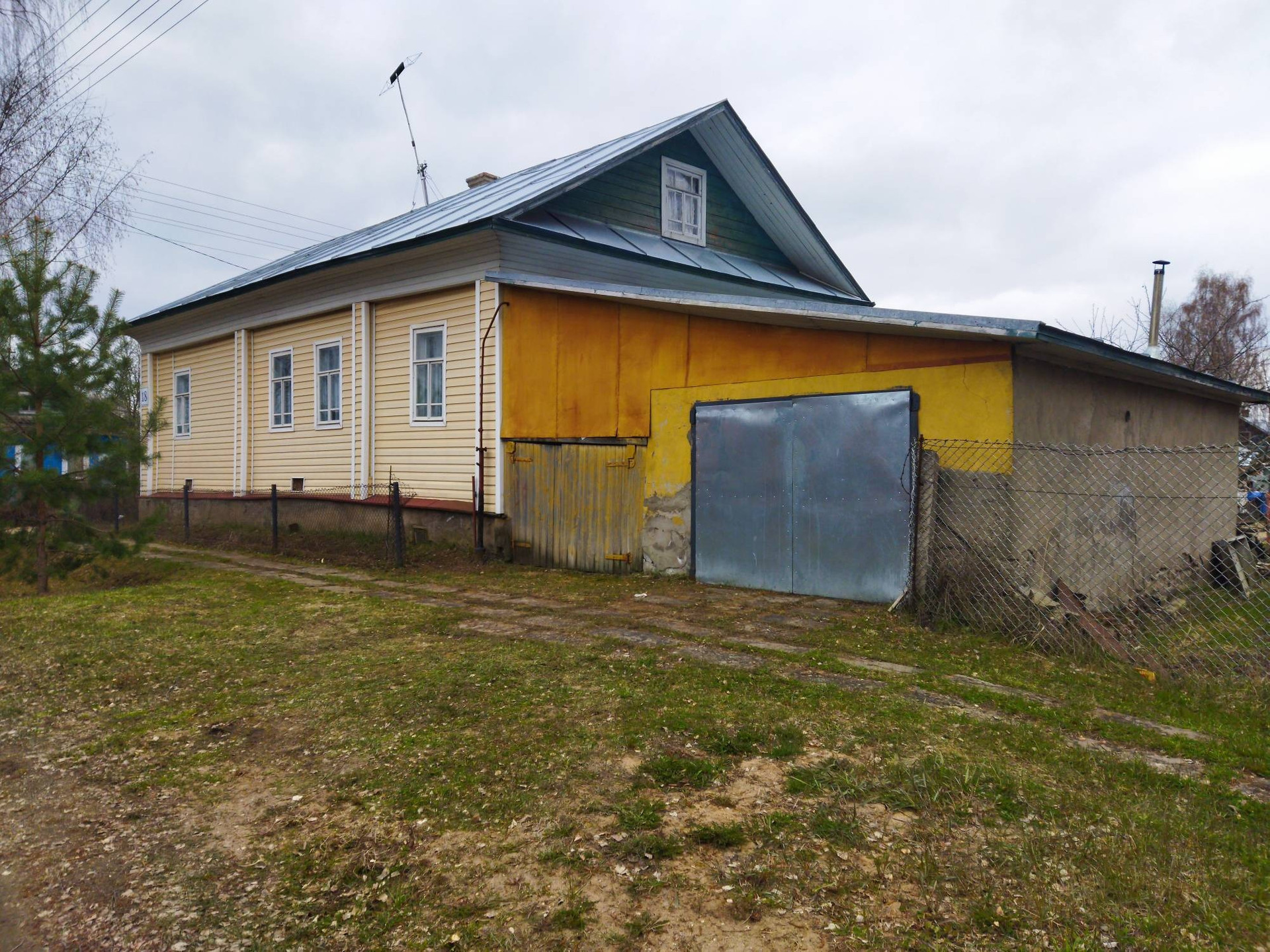Дом бревенчатый с русской печкой, обшит сайдингом. Индивидуальное отопление от напольного газового котла. Имеется такой же запасной котёл. Вода из скважины, установлена насосная станция. Горячая вода от водонагревателя. Гараж, пол бетонный. Баня, печь металлическая. Яма кирпичная. На участке есть теплица 3*4 метра, большая разросшаяся яблоня, кусты чёрной смородины, красной смородины.