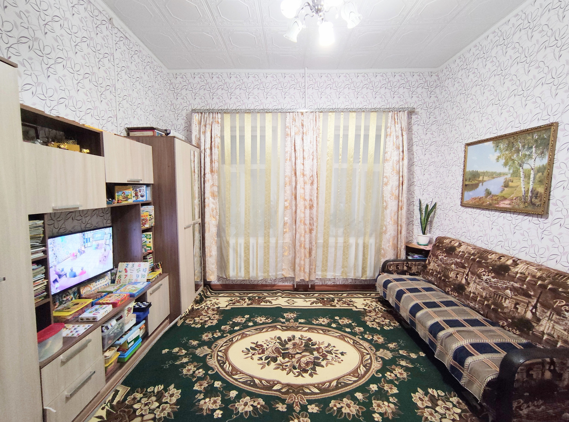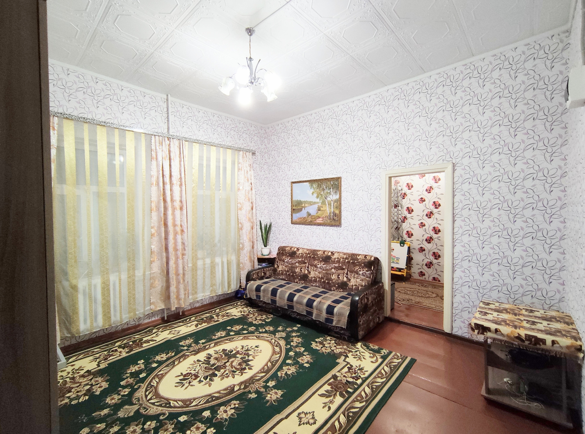 Комнаты теплые, уютные, с высокими потолками 3,19 м. На окнах установлены стеклопакеты. Отопление центральное.