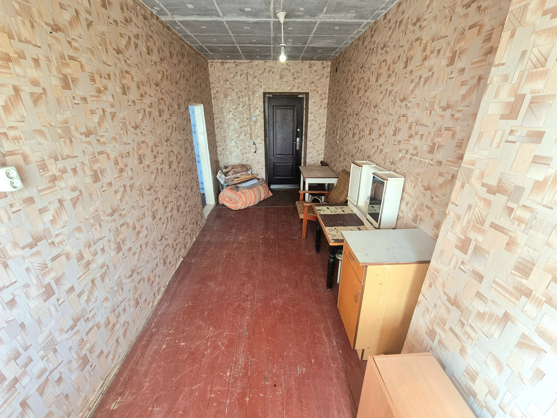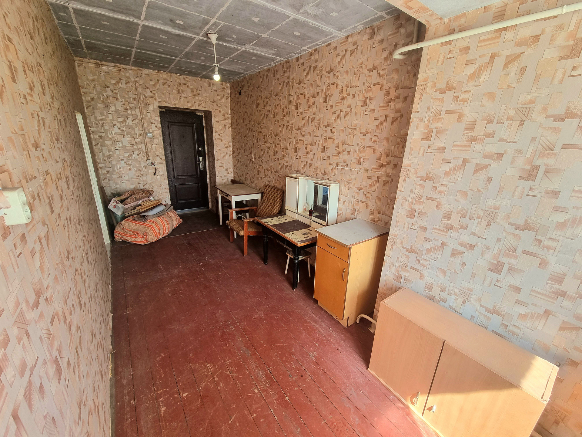 Комната расположена на первом этаже 5-ти этажного кирпичного дома.