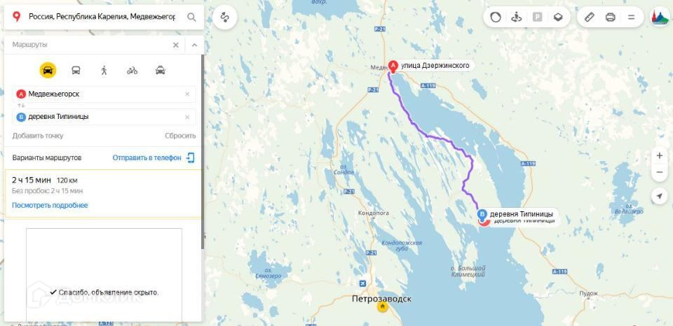 От Медгоры - 1,5 часа на машине. 15 км до Кижи, 20 км до Великой Губы. 270 км от Петрозаводска.