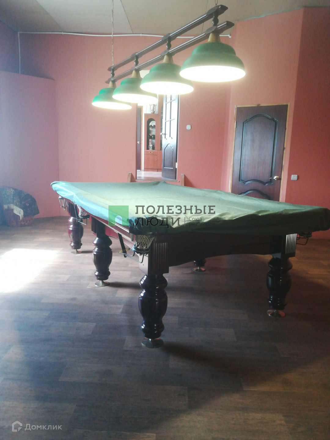 Новому собственнику остается кухонный гарнитур, мебель, в том числе стол для русского бильярда, тренажеры.