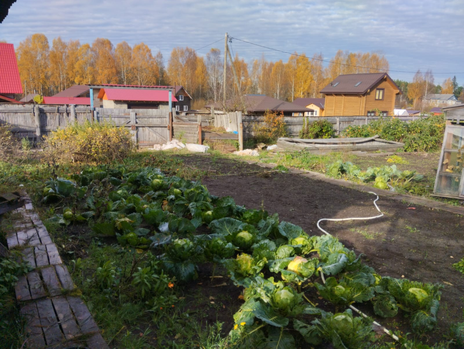 Территория участка ухожена, ровная, огорожена  забором.