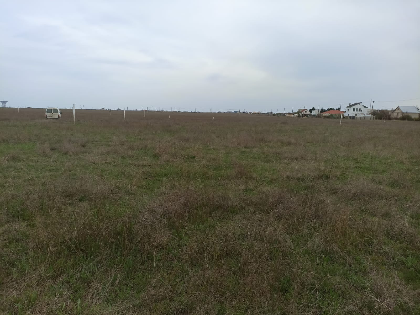 Участок идеально ровный, установлены бетонные колышки,