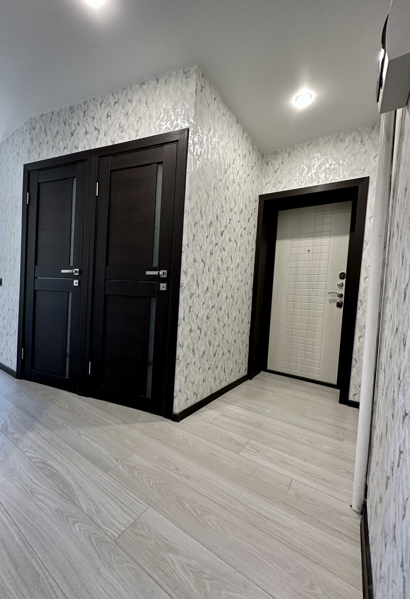 Окна выходят на разные стороны, в квартире есть просторная гардеробная.