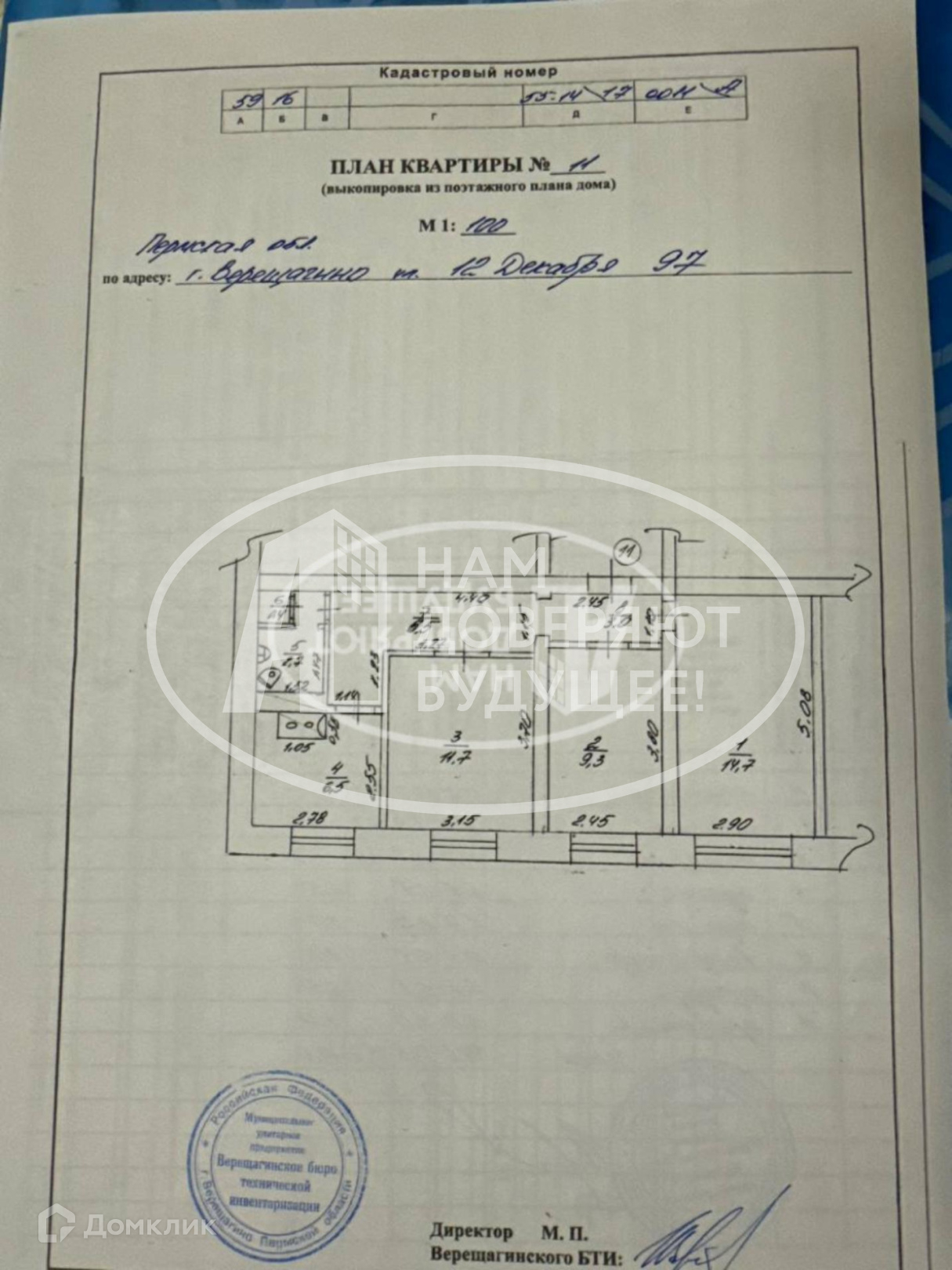 3-комнатная квартира, 56 м2, этаж 2 / 2, на продажу в Верещагино, улица 12 Декабря, 97