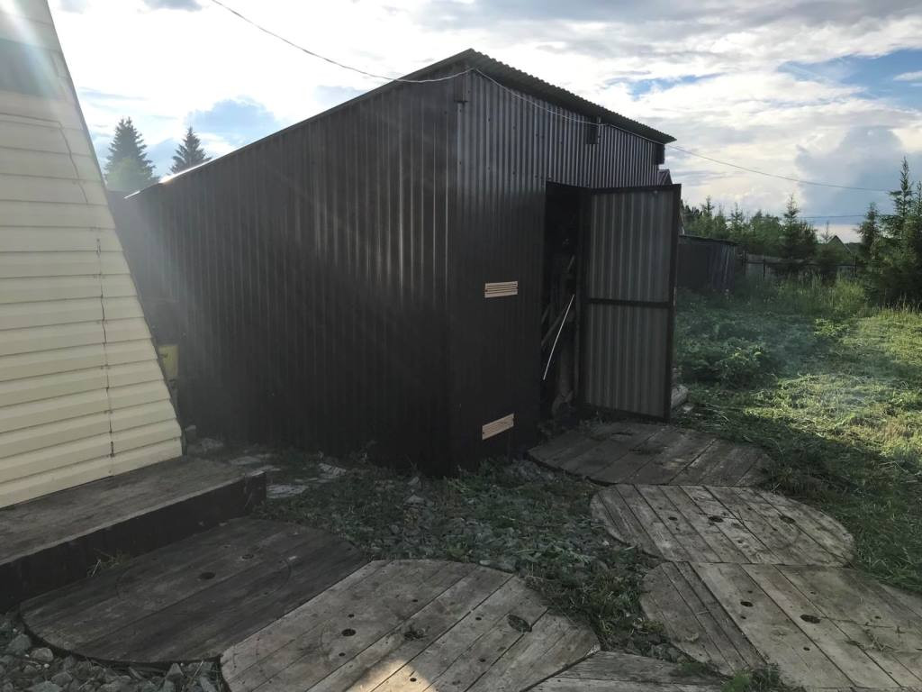Большой гараж 6 *11 м. был построен для автосервиса и автомойки. С возможностью установки автоподъёмника с оборудованной автомойкой с отводом воды, верстак, ворота с пультом управления. Имеется видеонаблюдение. Строение на кадастровом учете как незавершенное.
