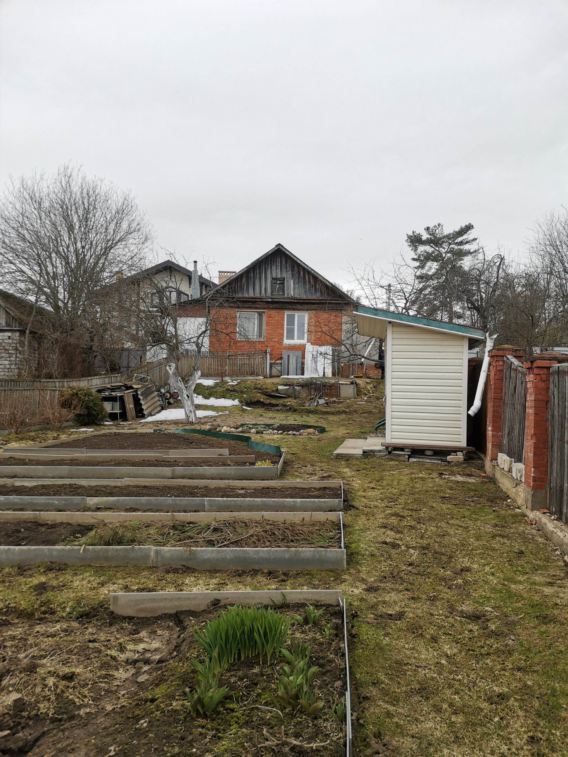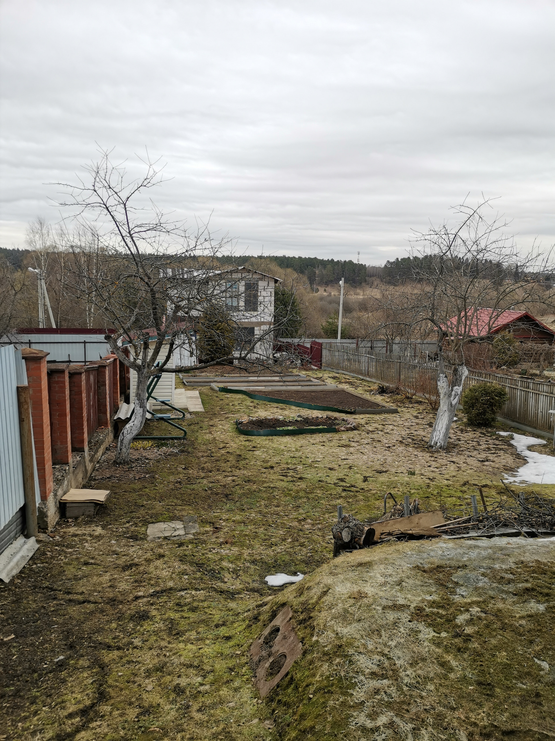 Участок огорожен, есть плодовый и ягодный сад, огород.