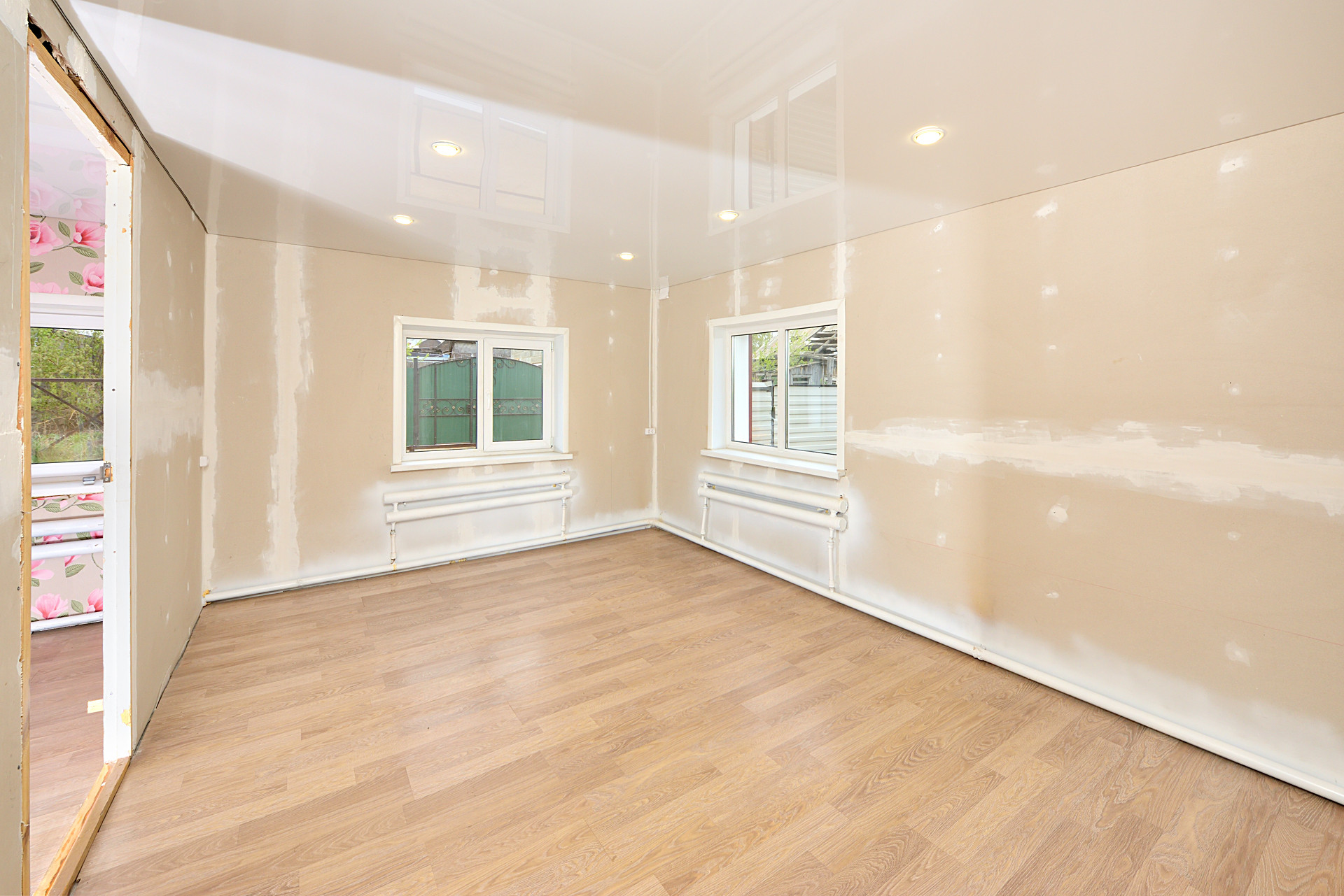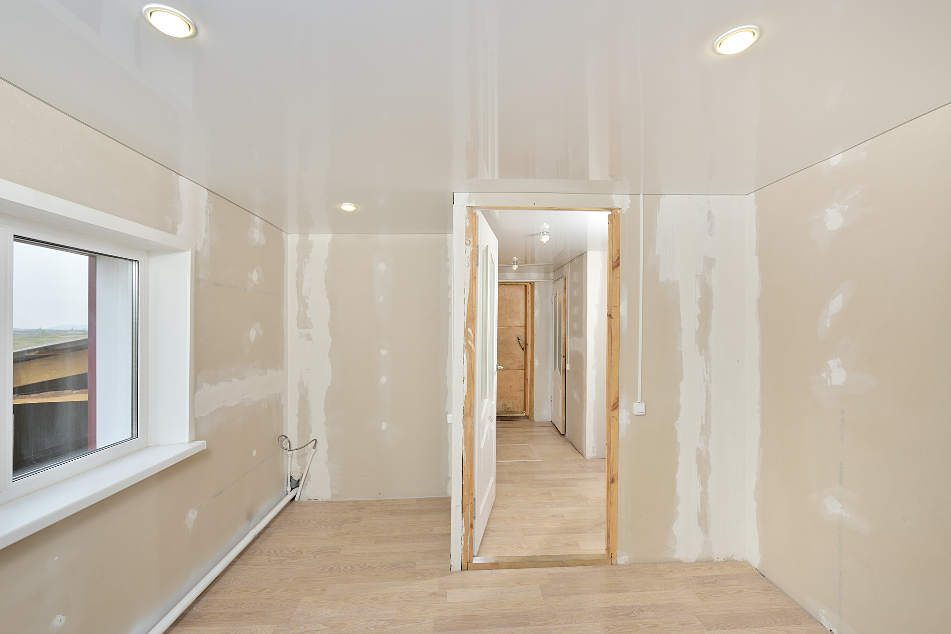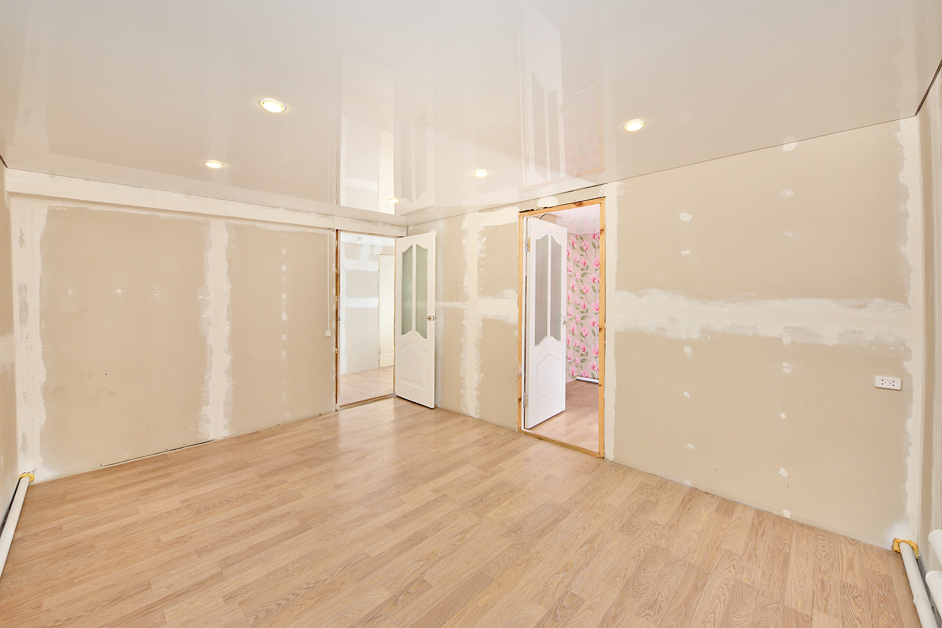 Натяжные, глянцевые потолки, точечные светильники