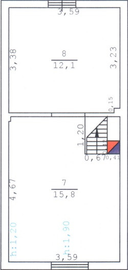 На 2-м этаже две комнаты с небольшим балконом.