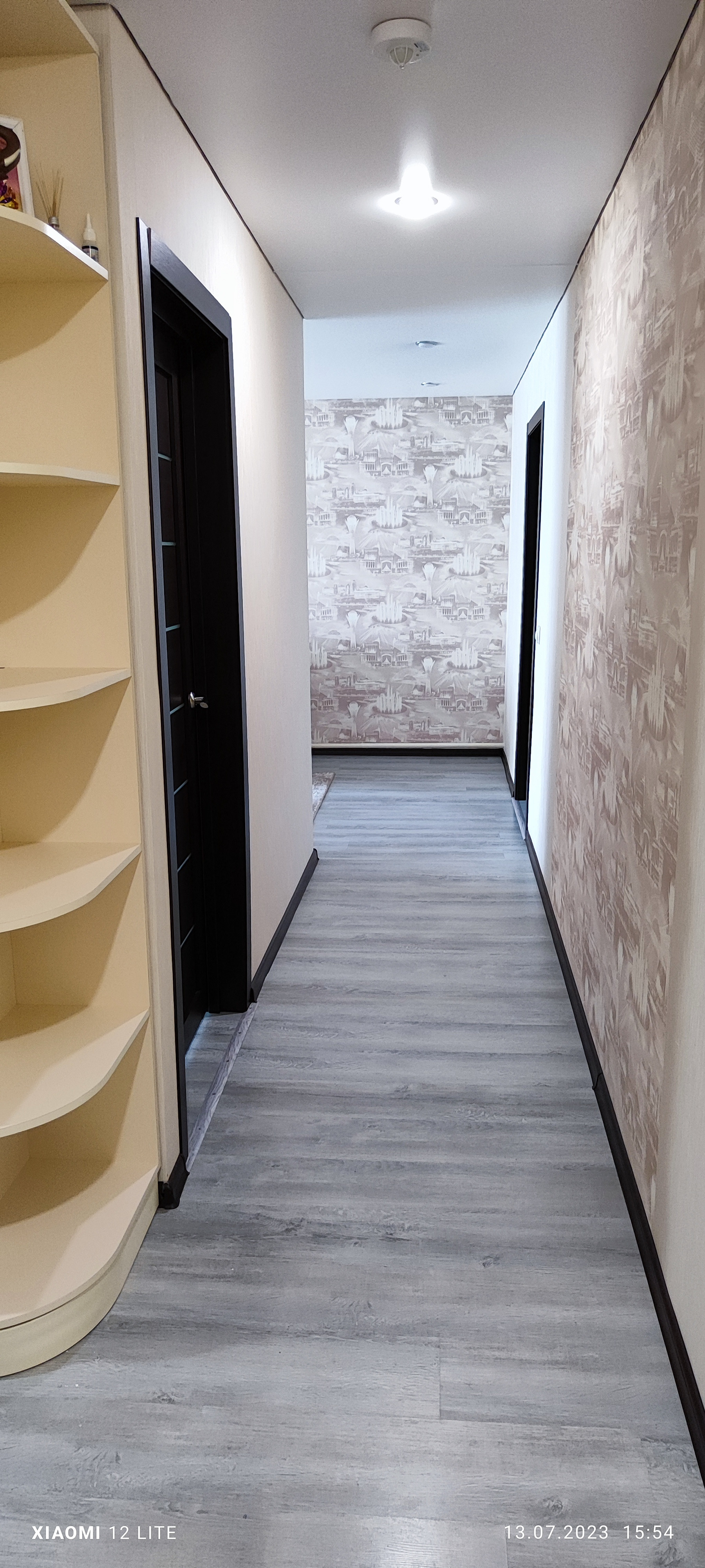 В коридоре на входе полы выложены кафелем + теплый пол. В коридоре  установлен  датчик движения на свет.