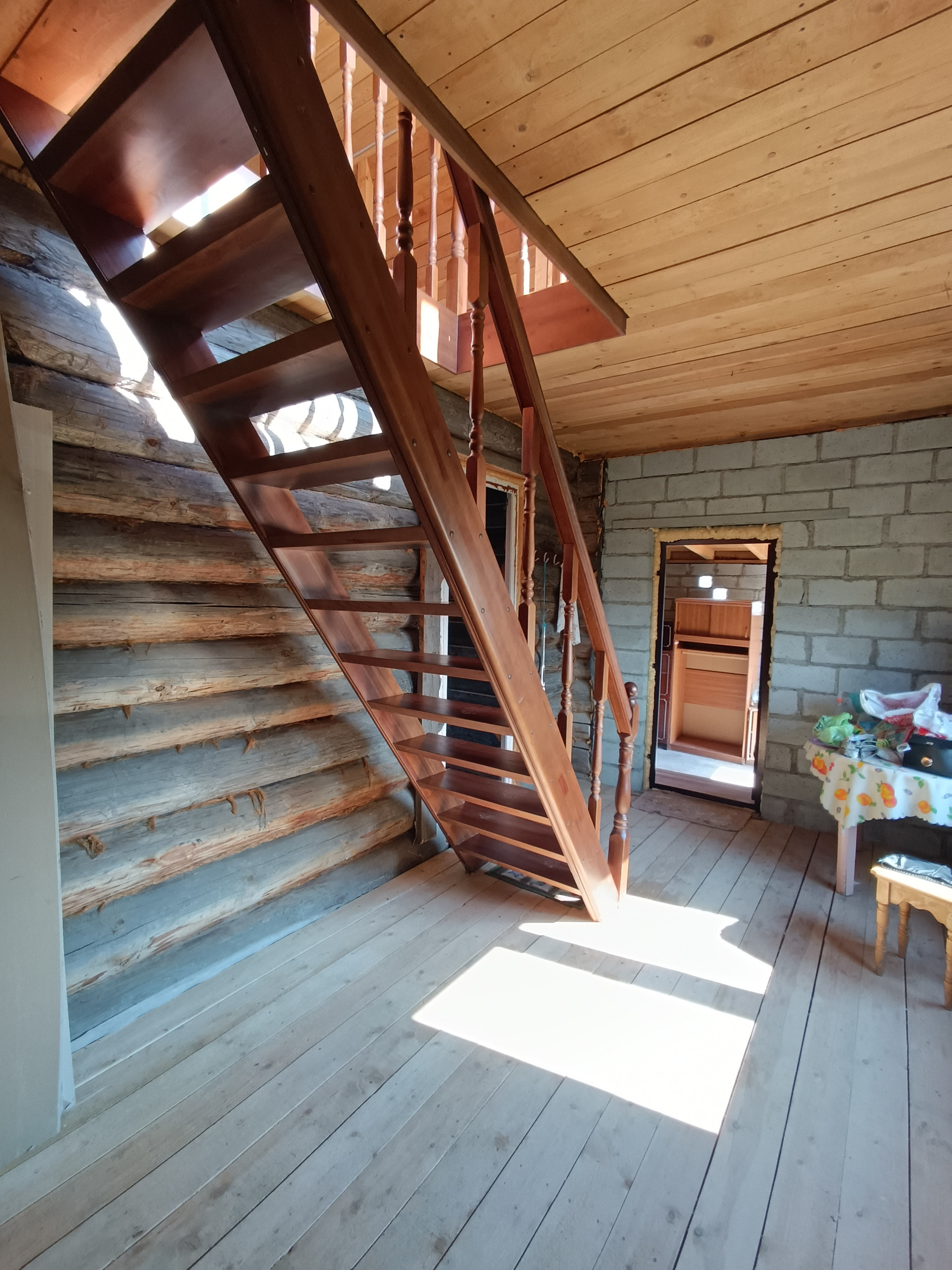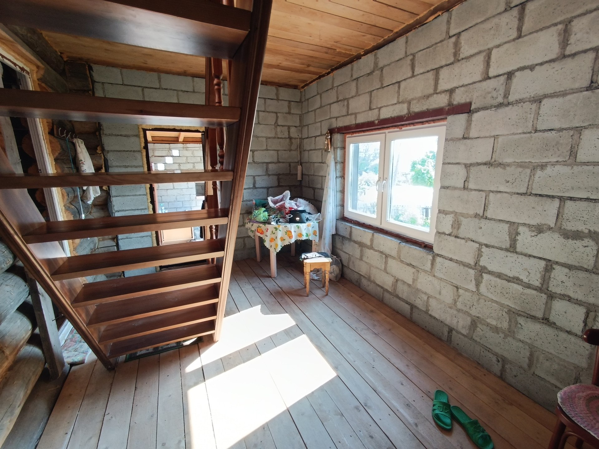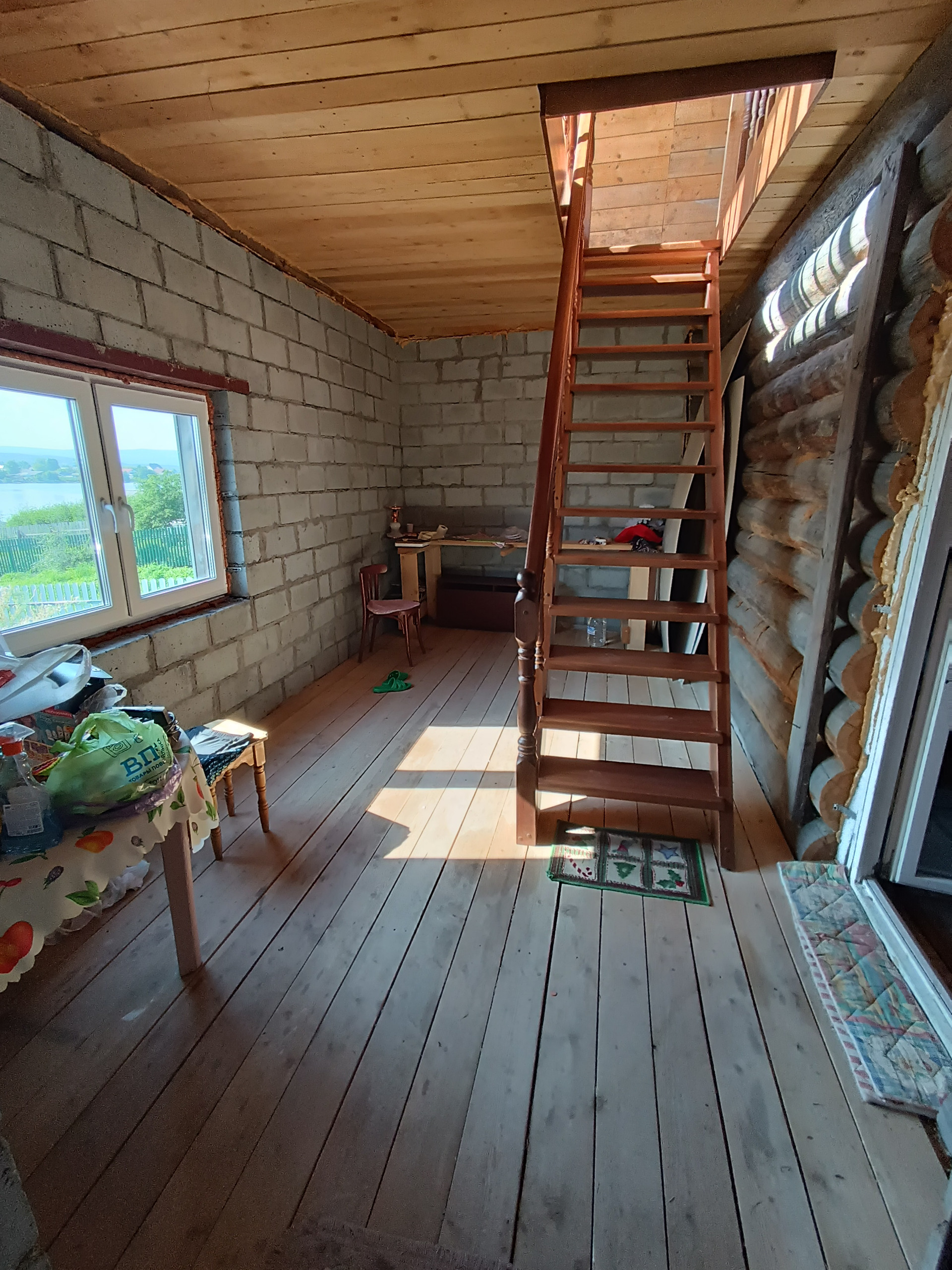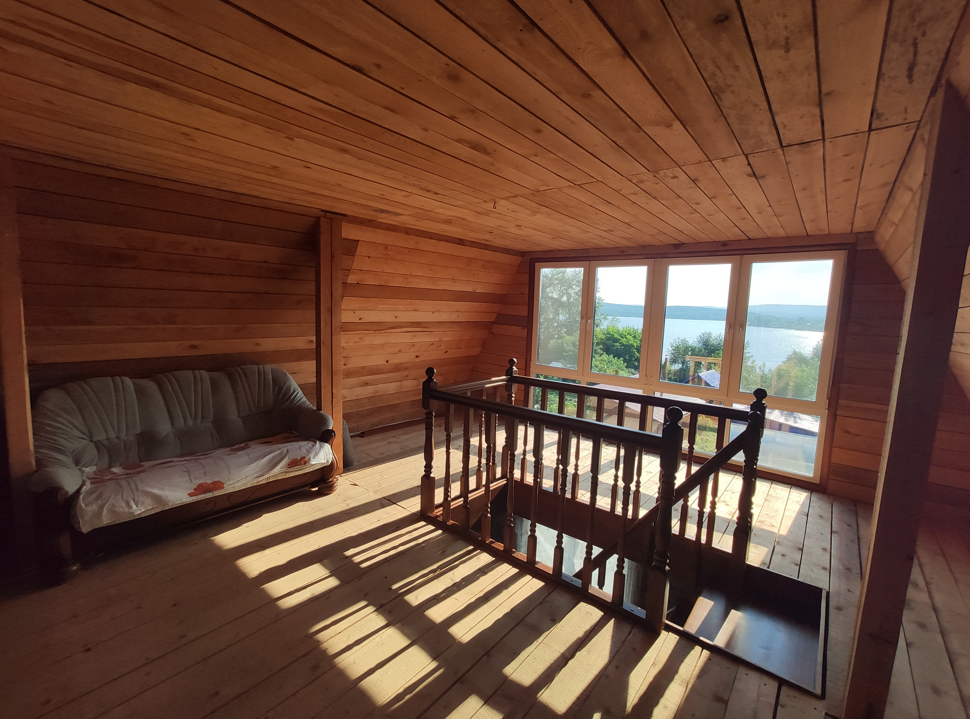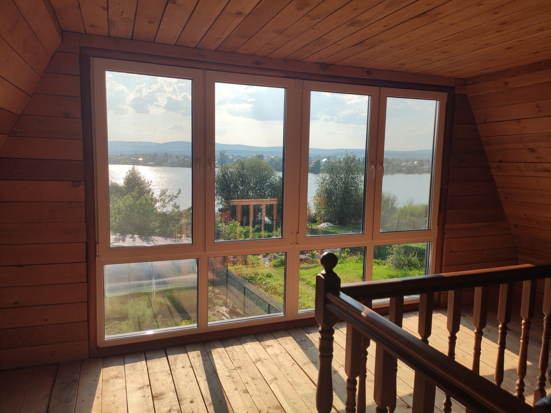 - дом – 75,2 кв.м., 2х этажный, выполнен из бруса, утеплен и облицован сайдингом, в доме на 1 этаже расположен металлический камин, дороги качественные пластиковые окна, на втором этаже панорамные окна с видом на участок и пруд, лестница из массива сосны, дом без чистовой отделки, пара-теплоизоляция, крыша покрыта металлочерепицей.