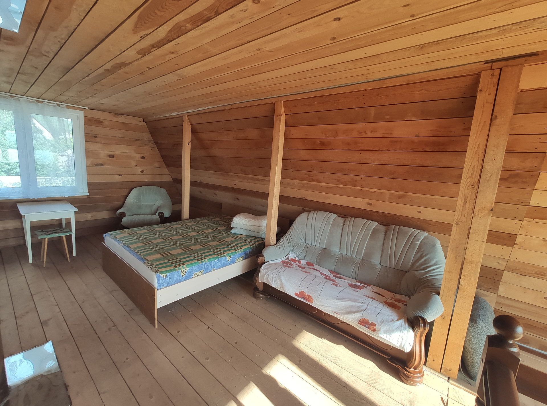 -гостевой дом - 9 кв.м., 1комната, из дерева, дорогие качественные пластиковые окна, пара-теплоизоляция, крыша покрыта металлочерепицей.