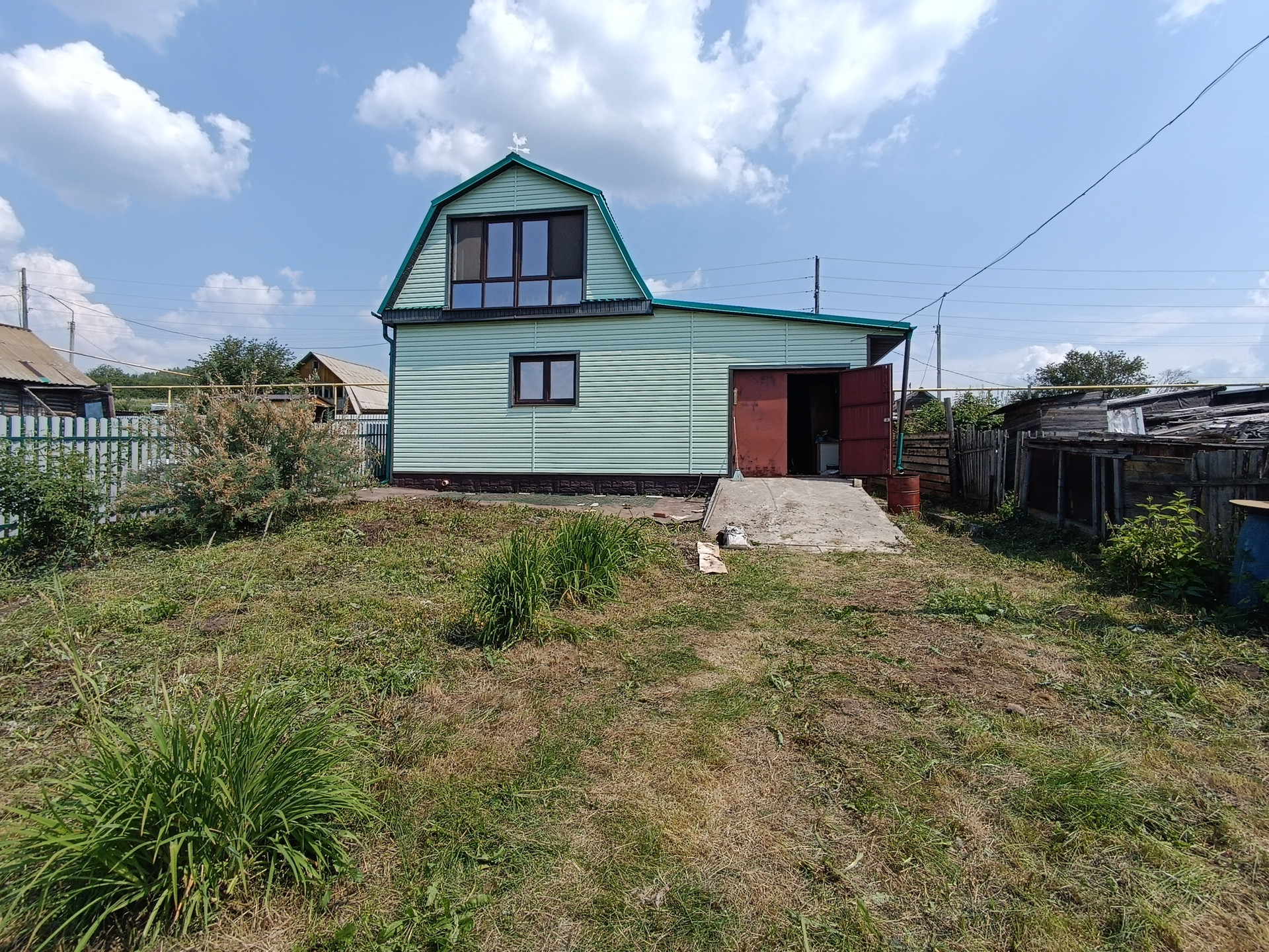 На участке преимущественно : 2 жилых дома, баня, гараж, хозпостройка, беседка, теплица.