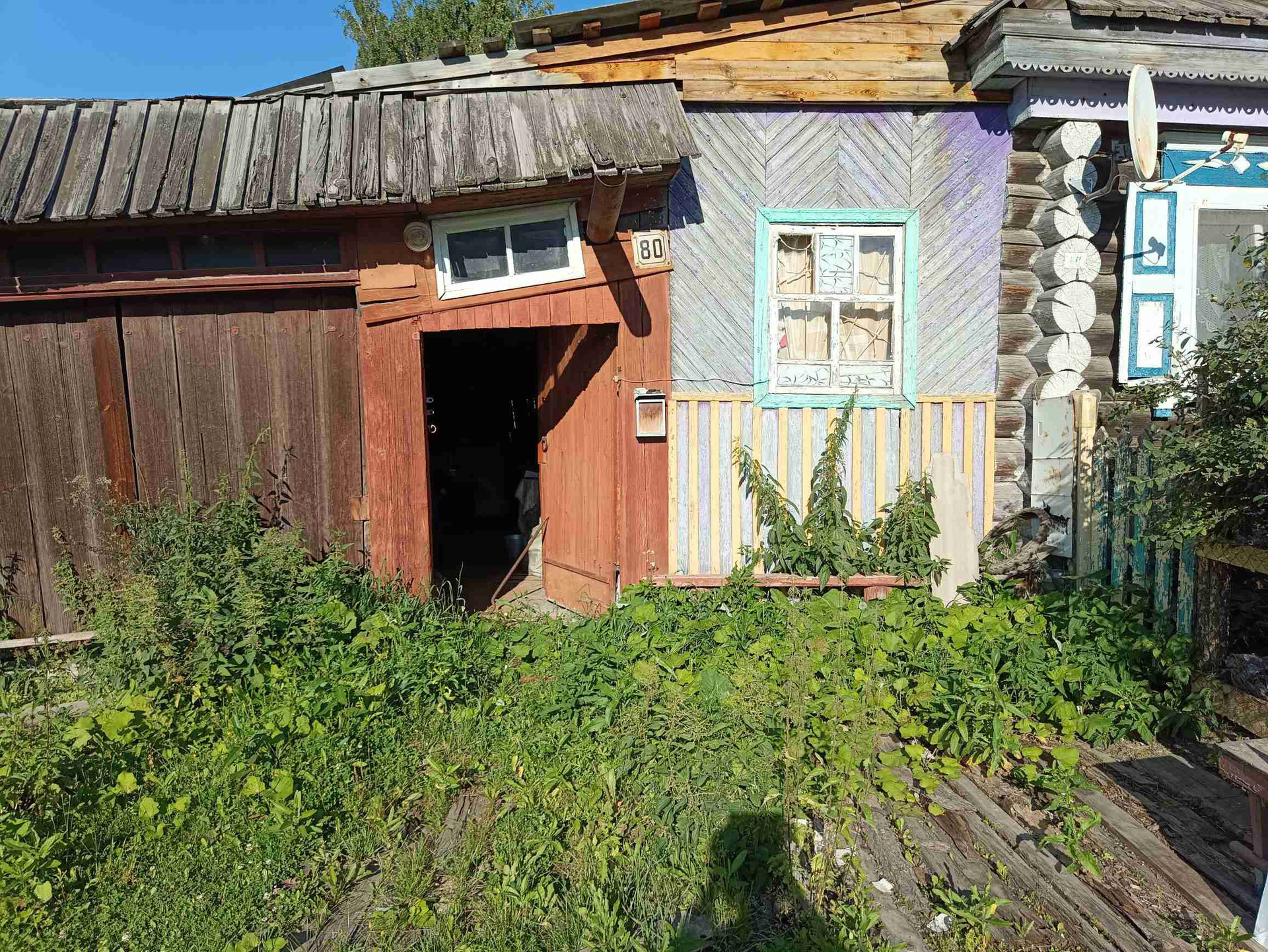 Крытый большой двор охватывает все постройки: стайку из бревна, помещение под инструмент, дровенник (имеющиеся дрова - бонус покупателю), туалет.