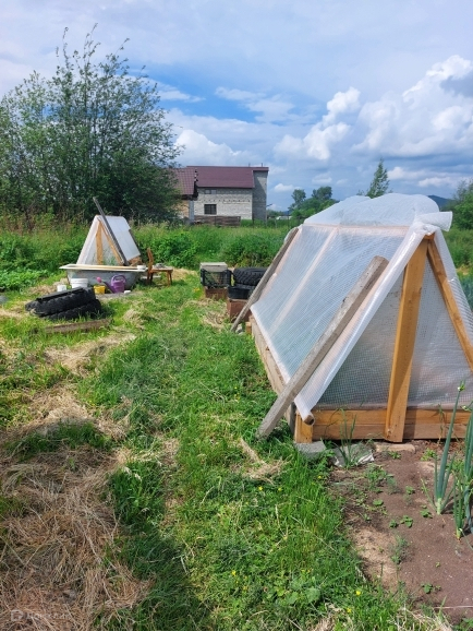 На участке есть колодец для полива. Теплица.