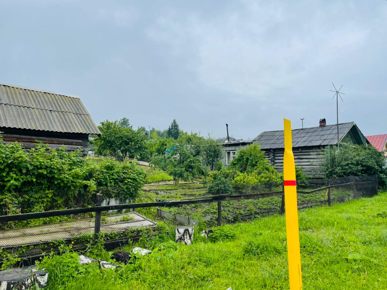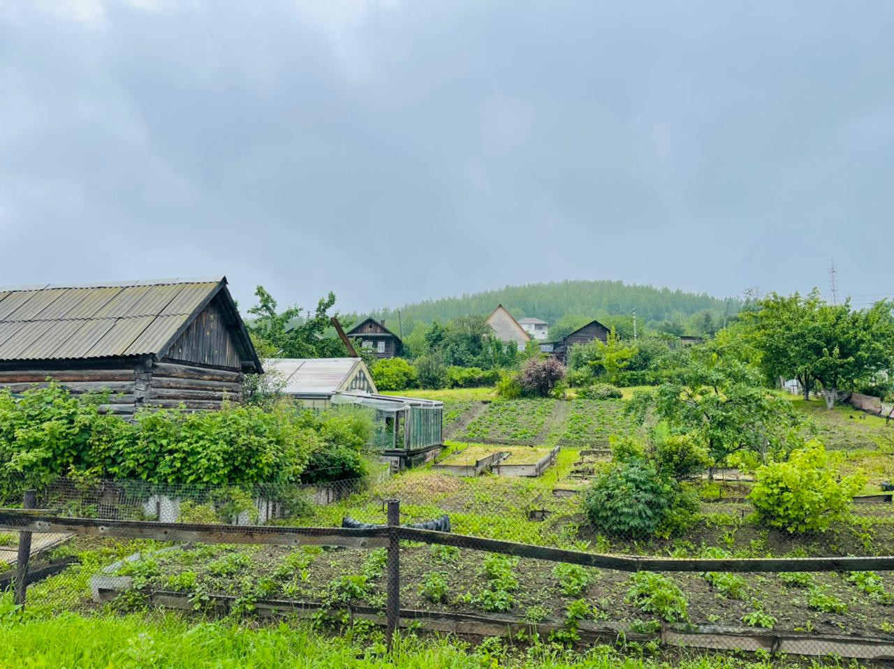 Участок - разработанный, с посадками. Есть теплица и сарай.