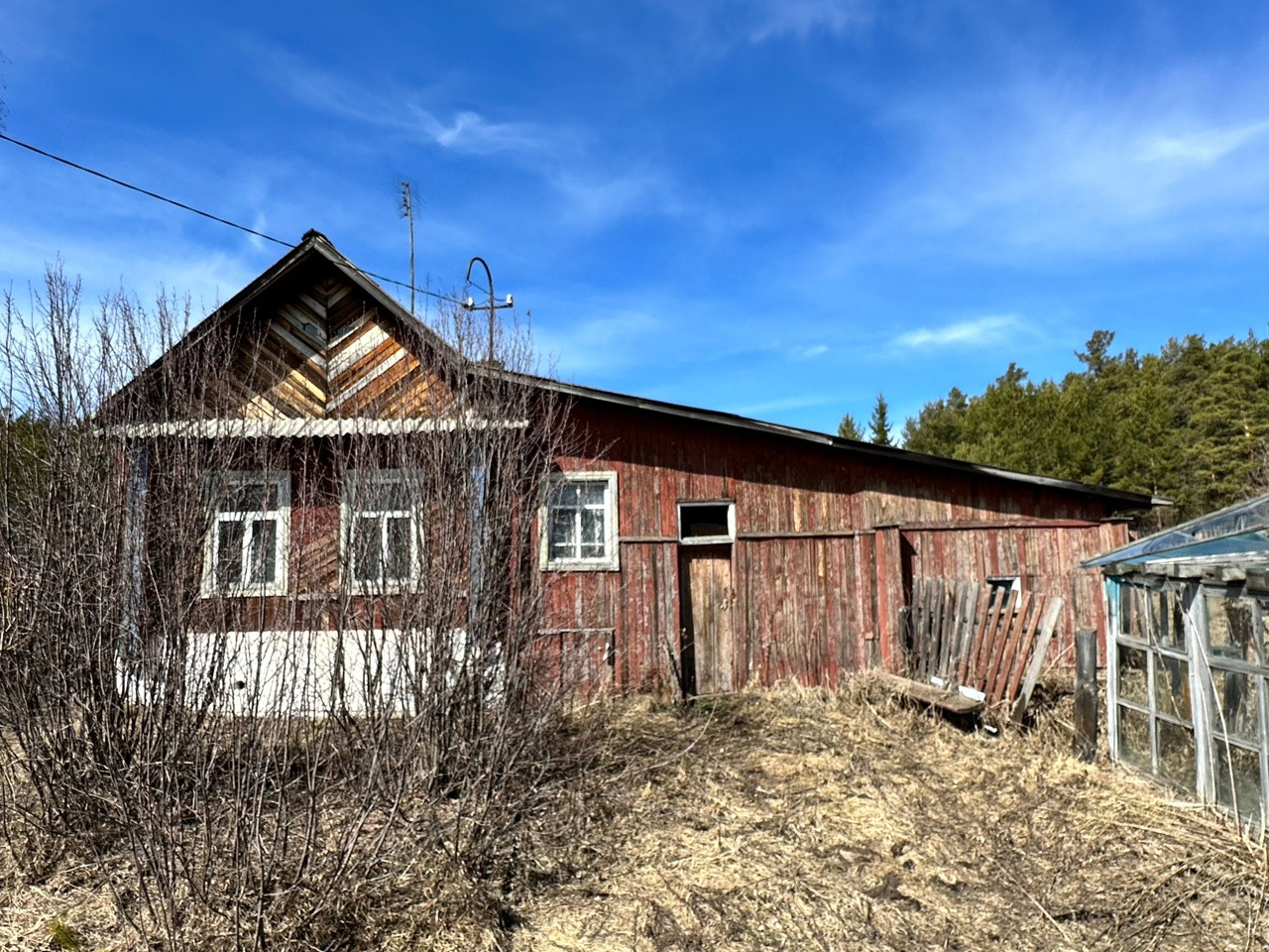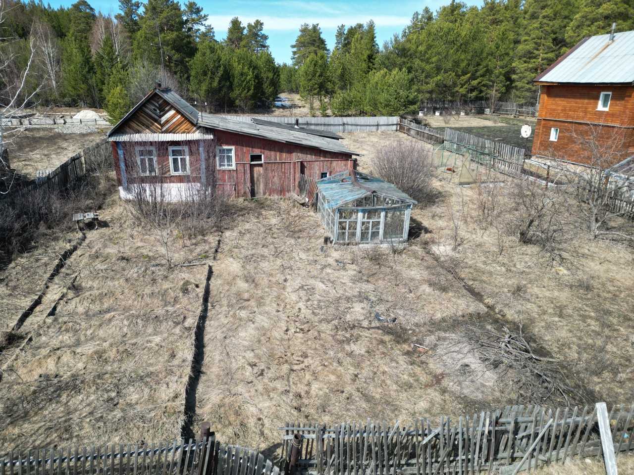 На земельном участке расположена баня и каркас теплицы.