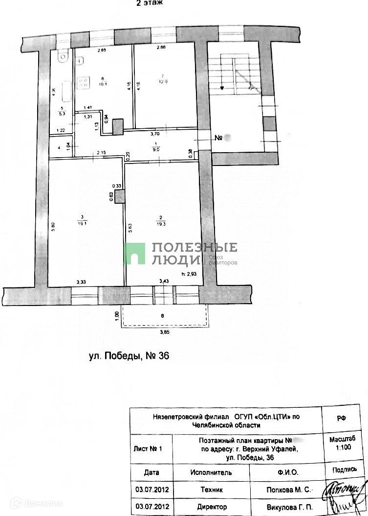 3-комнатная квартира, 75.7 м2, этаж 2 / 2, на продажу в Верхнем Уфалее, улица Победы, 36