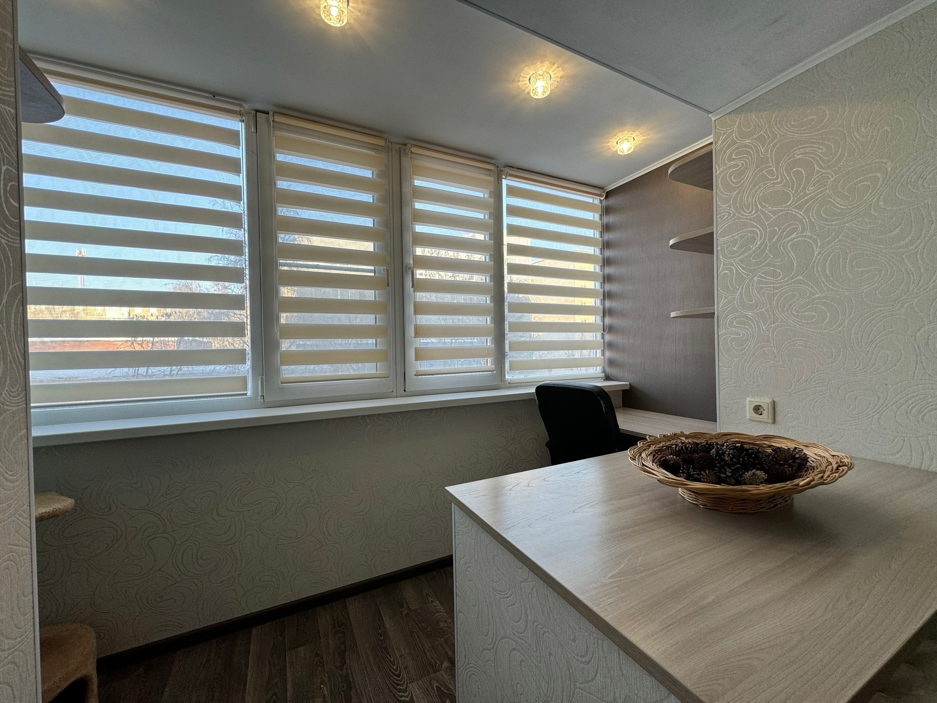 Квартиpа расположена на втором этаже пятиэтажного дома. Общая площадь - 68 кв.м. Удобный зал с капитальной лоджией, сделанной под кабинет.