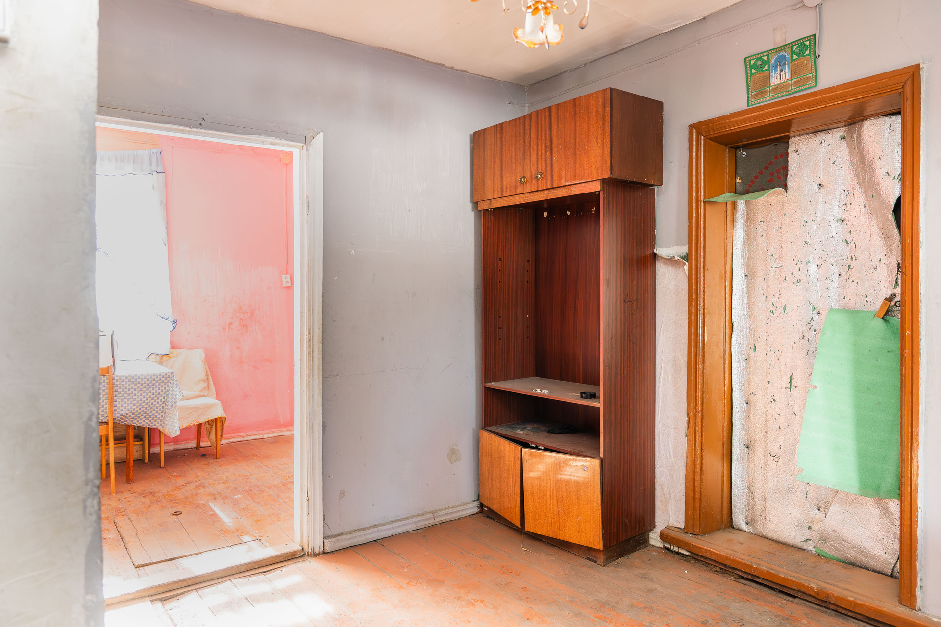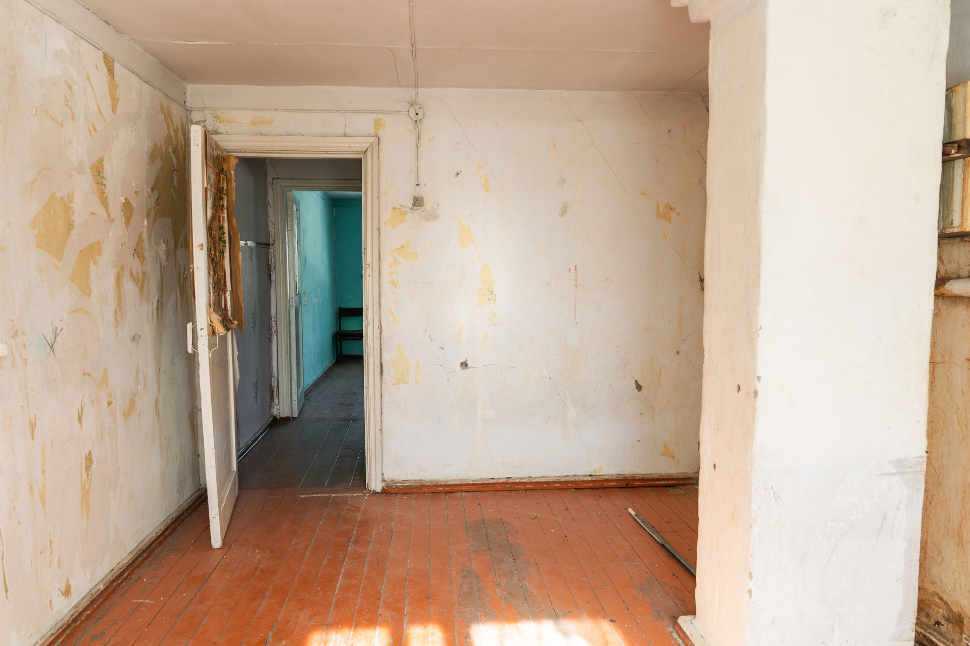 В доме 97,3 кв.м. жилой площади. Установлены стеклопакеты. Требует ремонта. На первом этаже кухня, одна изолированная комната и помещение под санузел, а на втором этаже две изолированные комнаты. Между этажами деревянная крепкая лестница.