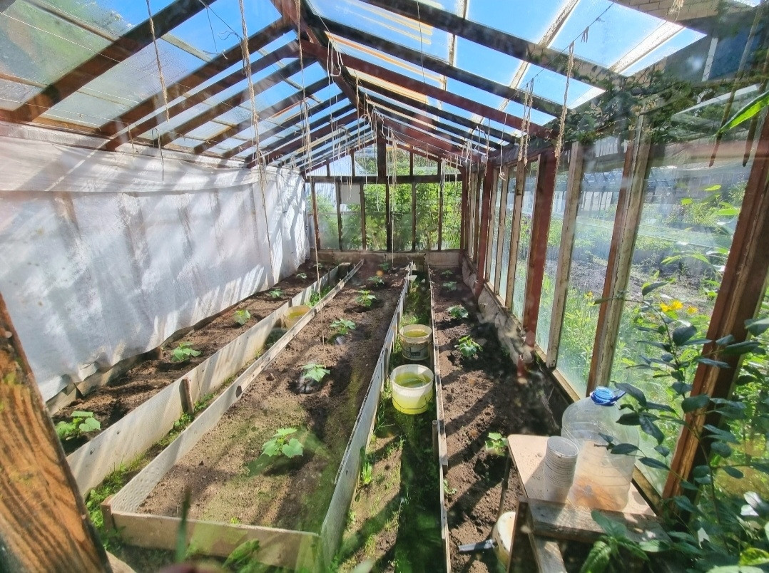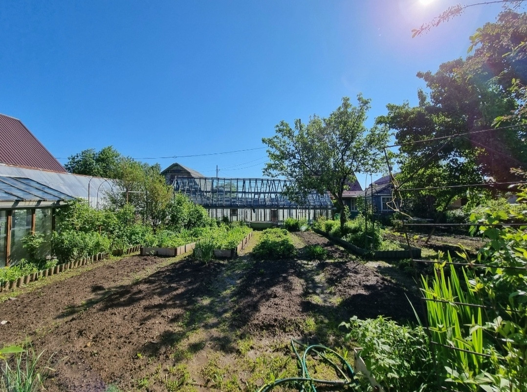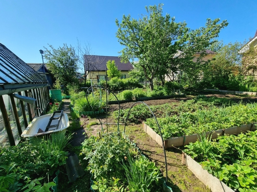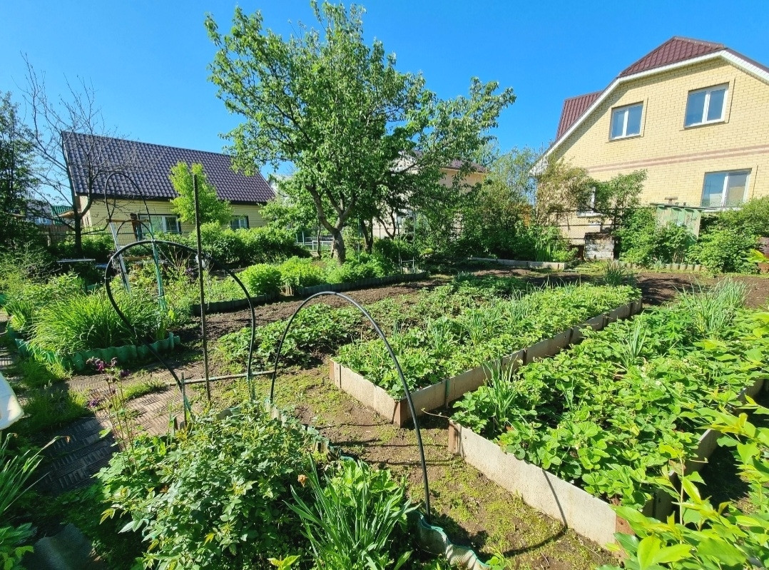 Насаждения: клубника, кустарники, деревья, малина, смородина, яблони, сливы!