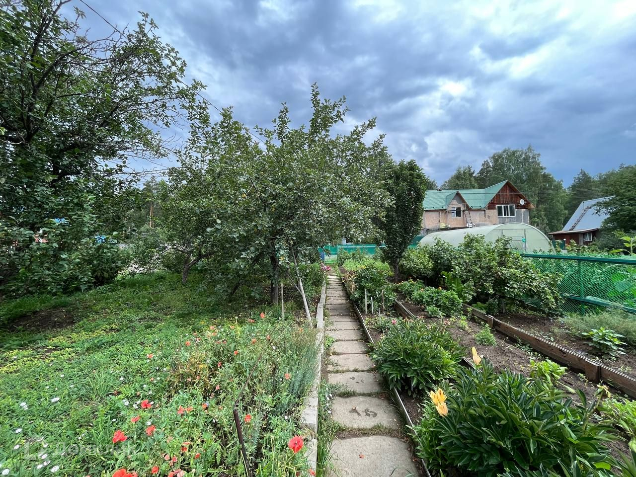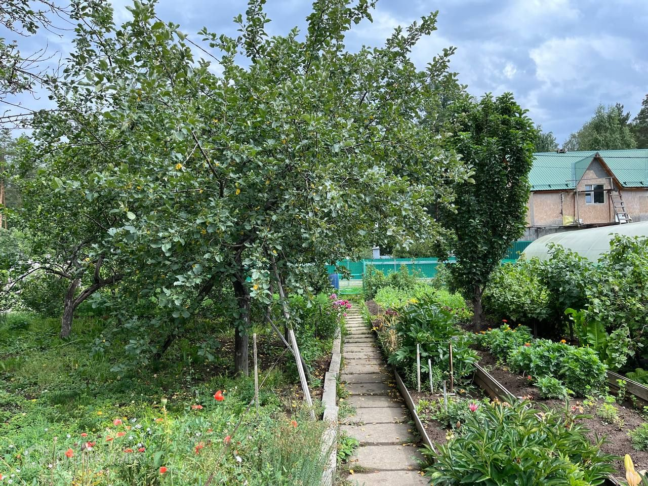 - плодовые деверья, грядки.