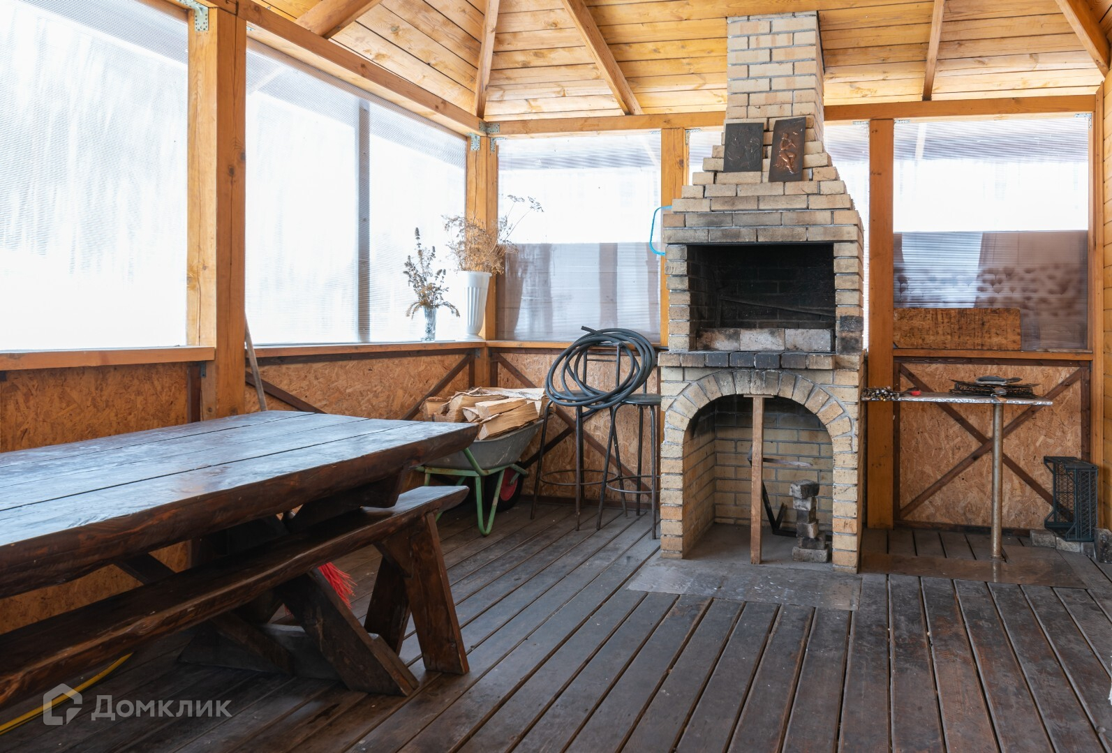 Дом с подогреваемым чаном, русской баней, мебелью и техникой, крытой большой верандой с гриль-зоной и печью, участком, хозблоком, сараем.