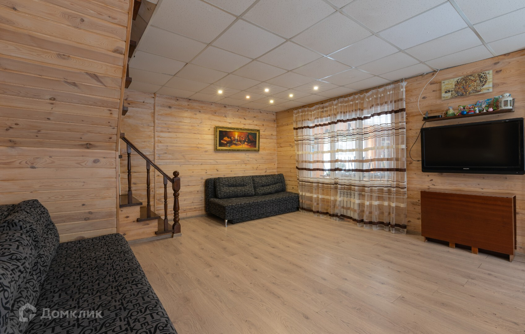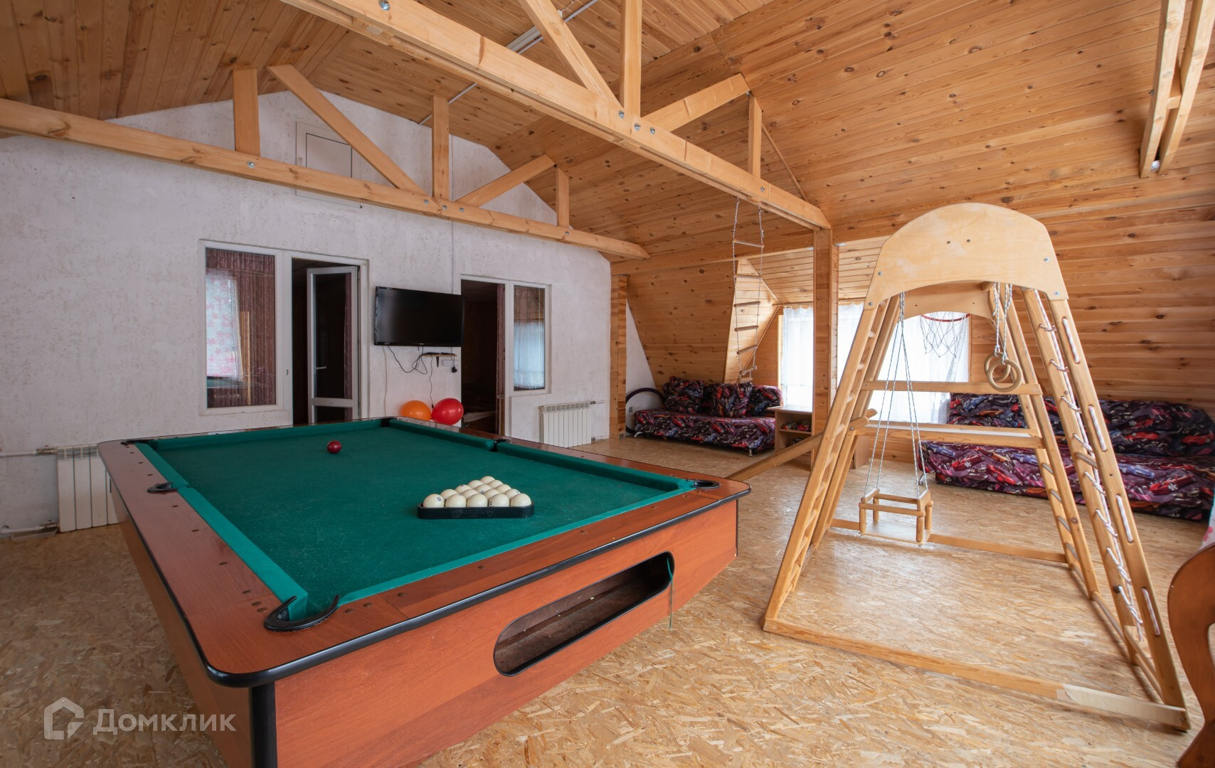 Второй этаж оборудован 4 спальнями, санузлом, большой детской с игровым комплексом.