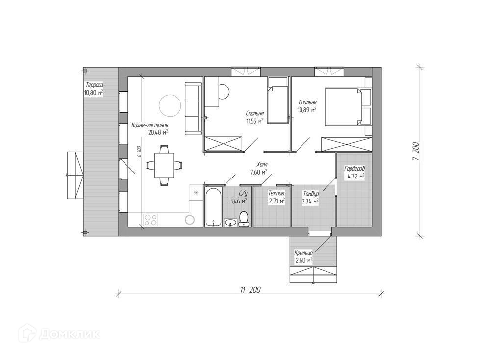Общая площадь 80 м2
