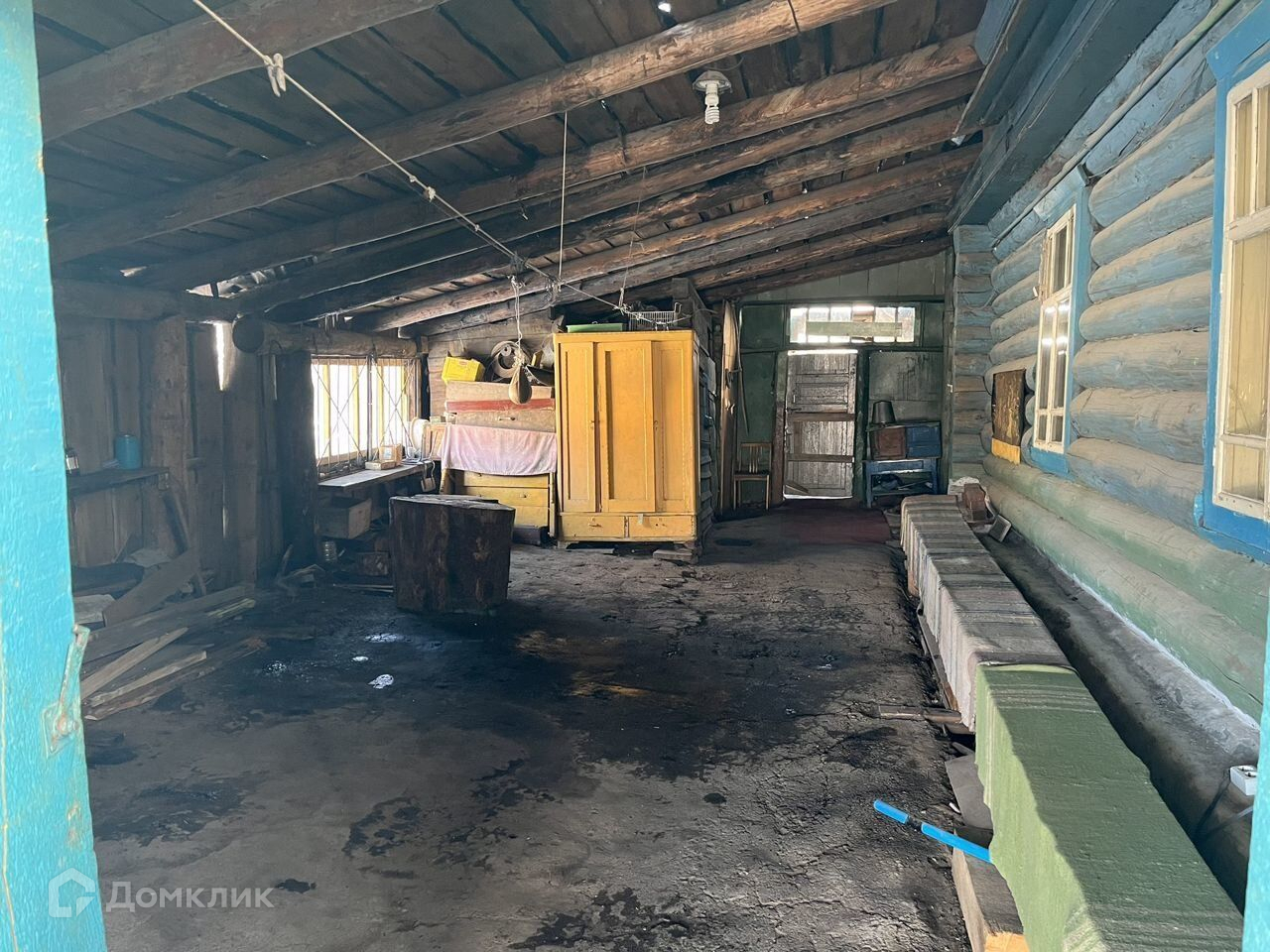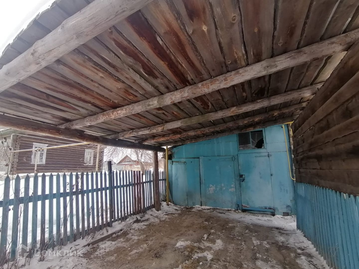 Дом построен из бревна.