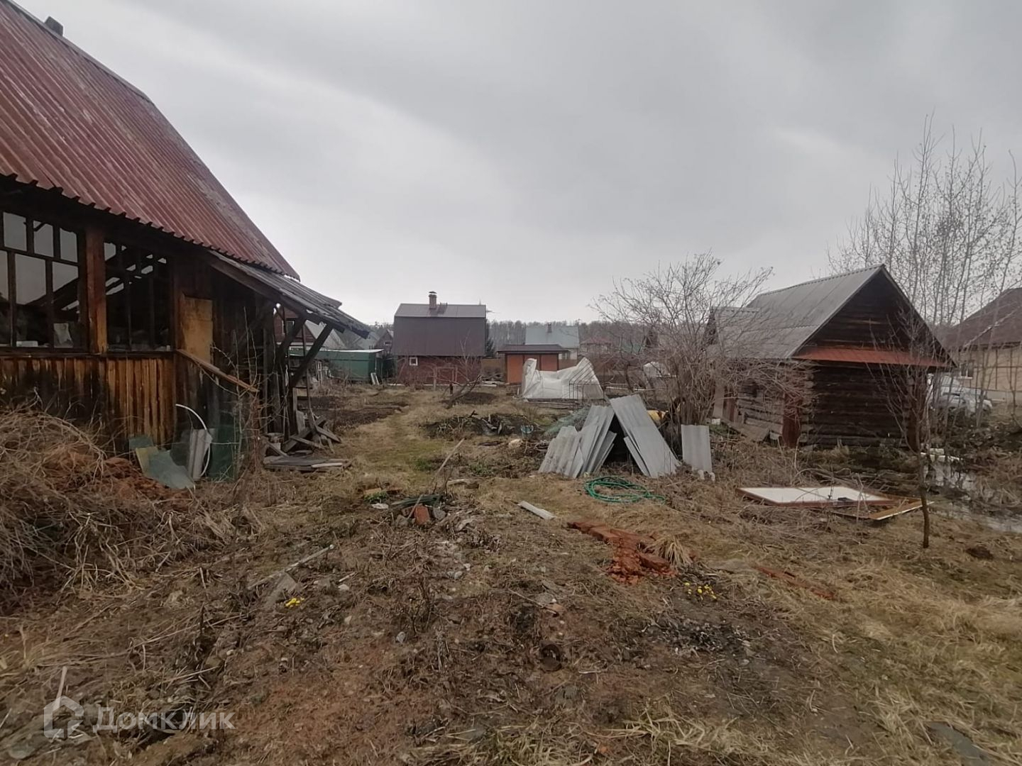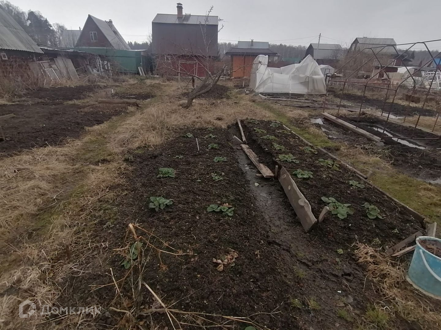 Участок разработан, 2 теплицы, есть грядки для растений, плодовые деревья и кустарники – яблоня, малина, смородина, слива, клубника.