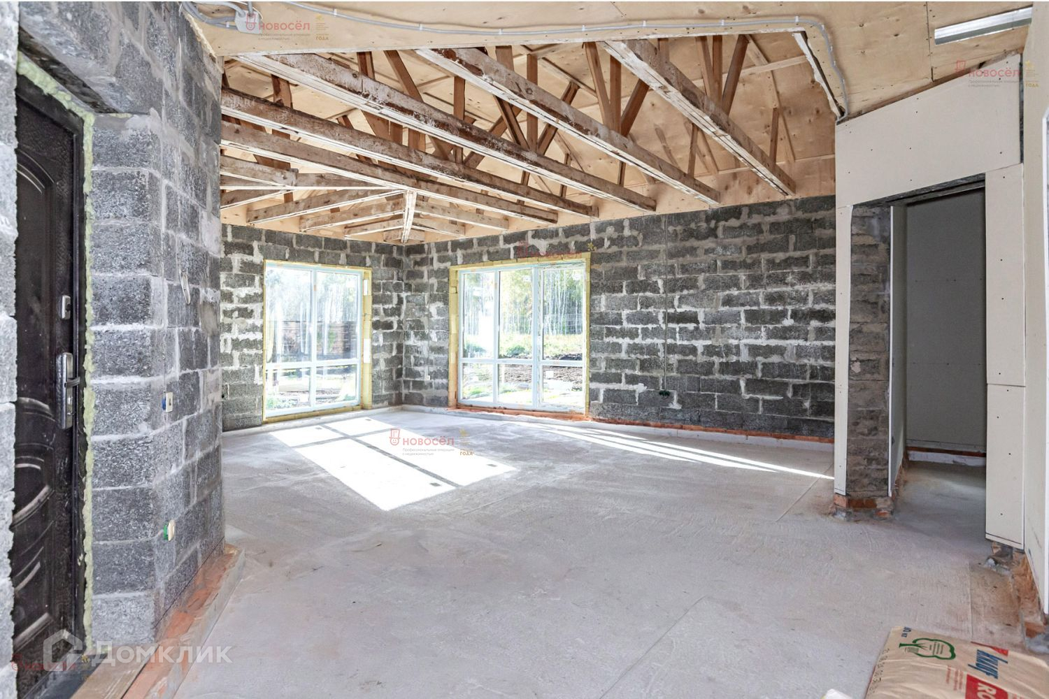 Площадь дома 114 кв.м. 3 комнаты. кухня-гостиная, ванная комната, гардероб. Котельная с отдельным выходом, теплосберегающие окна, скважина в доме. Стены - арбалитовый блок, перегородки - пароблок. К дому пристроен фундамент для террасы с выходом из гостиной.