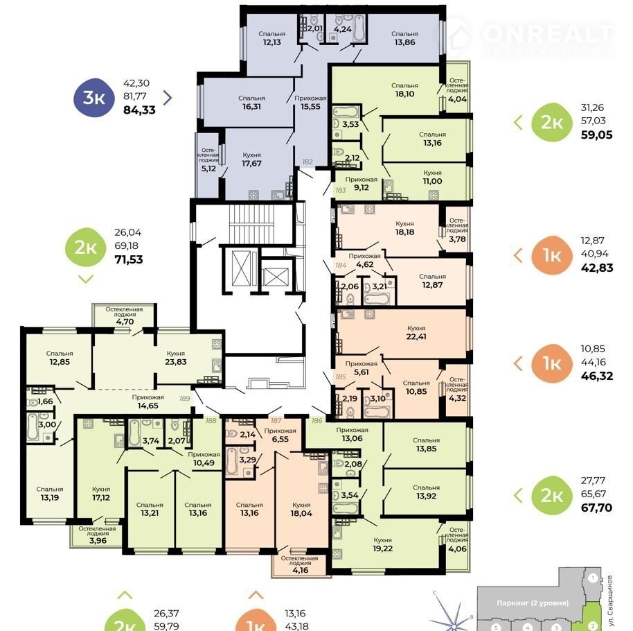 В доме есть подземный паркинг на 211 мест и 69 кладовых. Здесь точно тепло и безопасно!