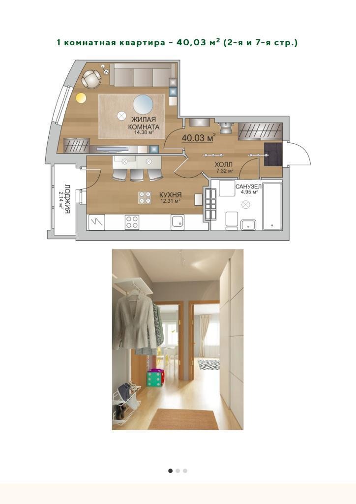 Общая площадь с учетом лоджии 40.6 кв.м.