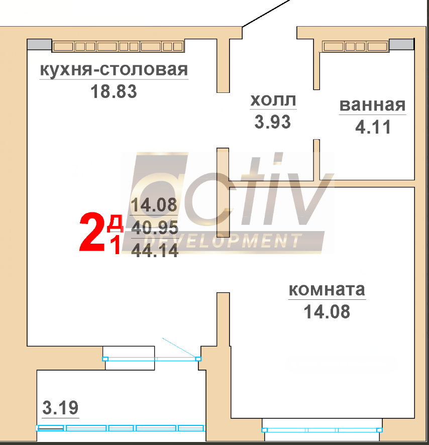 Общая площадь 44 м2