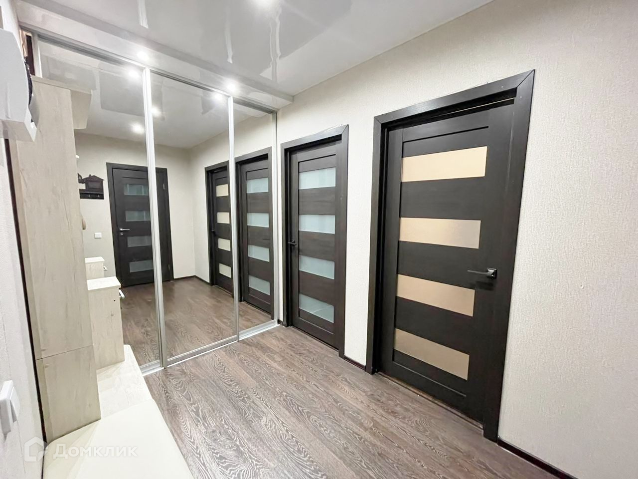 В коридоре установлена гардеробная зона с внутренним освещением. В квартире выполнен классический ремонт: на полу износостойкий линолеум, виниловые обои, натяжные потолки. Установлен новый кухонный гарнитур, духовой шкаф, электрическая варочная поверхность Hotpoint Ariston. Санузел выложен высококачественной плиткой. Большим плюсом этого дома является наличие собственной котельной – это позволяет всегда пользоваться горячей водой, и получать низкие коммунальные платежи. Счетчики ГВС, ХВС и отопления согласно проекту, установлены в специальных шкафах в межквартирных коридорах. В квартире горизонтальная разводка, создает ощущение теплых полов.