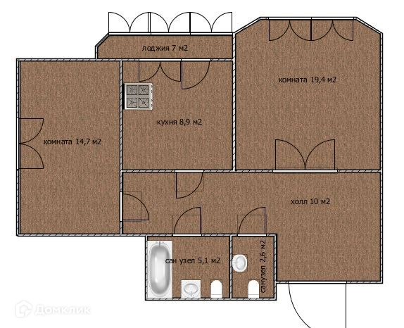 - санузел - 5,1 м2,